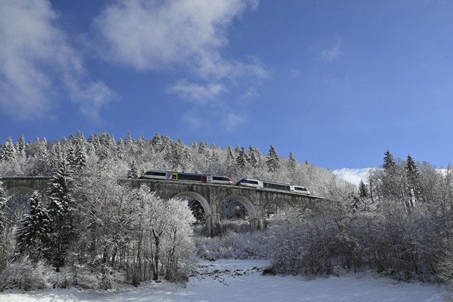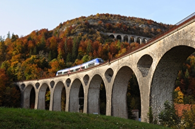36 tunnels, 18 viaducs et une découverte sur les rails des plus beaux paysages des Montagnes du Jura : vignobles, plateaux, forêts...
