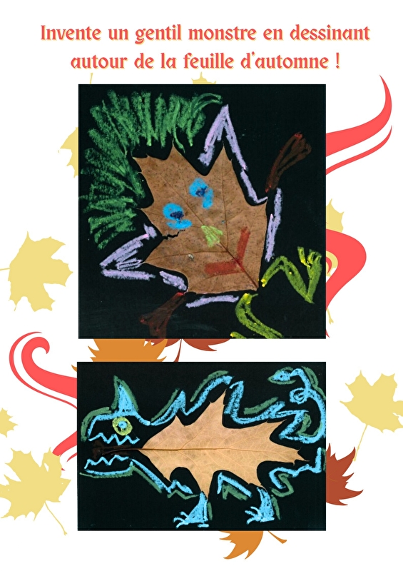 Parmi les ateliers proposés : inventer un gentil monstre en dessinant autour d’une feuille d’automne.