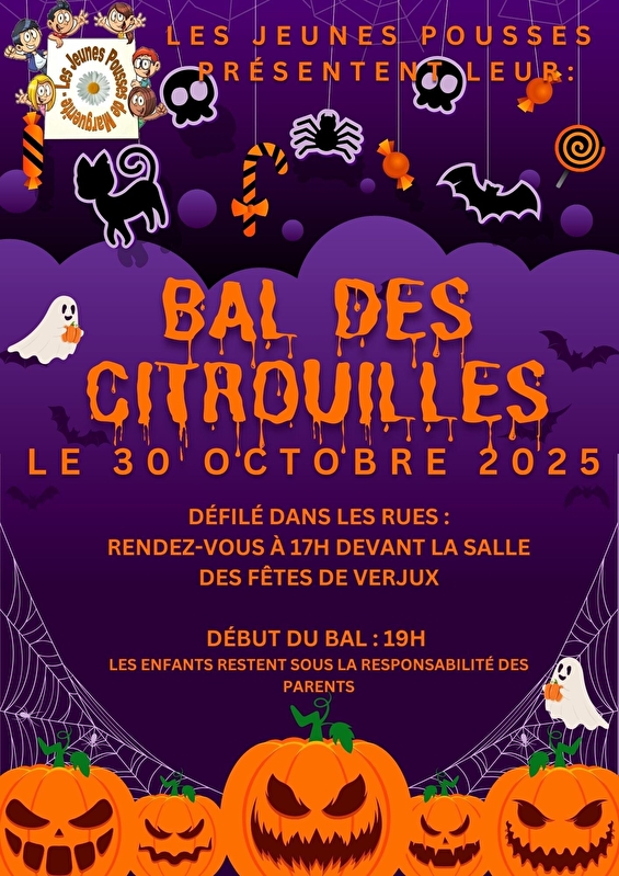 Défilé dans les rues à 17h à partir da la salle des fêtes de Verjux. Début du bal à 19h le 30 octobre 2025 !