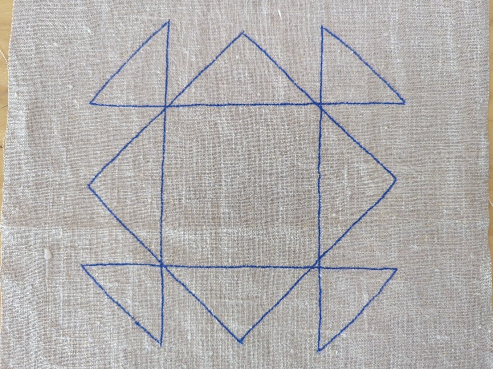 - Dessiner ce dessin à la machine à coudre sur un tissu entoilé