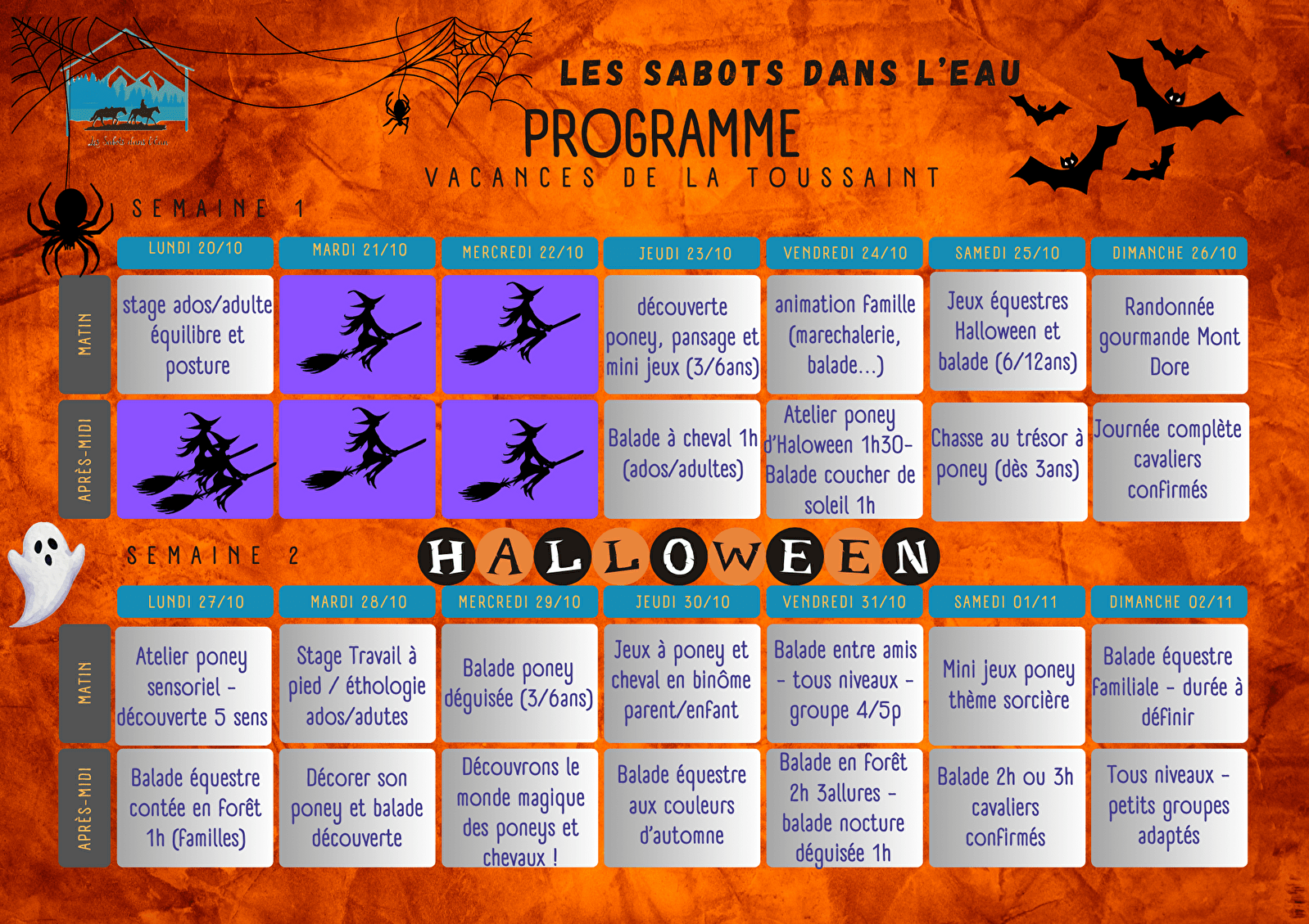 Au programme : ateliers poneys dès 3 ans, stages techniques, balades en forêt, jeux et chasses aux bonbons d’Halloween, mais aussi animations originales comme la découverte de la maréchalerie, la balade contée, ou encore la randonnée gourmande au Mont d’Or.