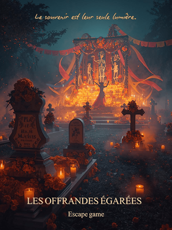 Plongez au cœur du Día de Muertos dans notre escape game immersif Les Offrandes Égarées, à la Ferme du Bois de Plottes, en Bourgogne du Sud. Entre énigmes mystérieuses, monde des mort en fête et autel mexicain scintillant, vous devrez retrouver les offrandes disparues pour rétablir le lien entre les vivants et les ancêtres.