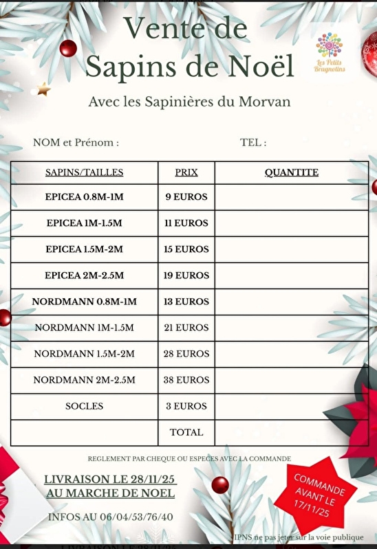 L’Association des Parents d’Élèves a le plaisir de vous inviter à participer à son Marché de Noël et à sa vente de sapins le 28 Novembre 2025 à partir de 17h. Au programme : distribution des sapins précommandés, stands d’artisanat, buvette et petite restauration et visite du Père Noël !