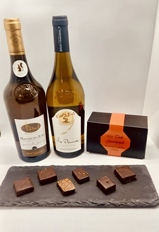 Imaginez la délicatesse d’un vin blanc aux notes florales se fondant dans l’onctuosité d’un chocolat légèrement parfumé aux agrumes. Laissez-vous surprendre par la puissance d’un vin rouge structuré qui se confronte à l’intensité d’un chocolat noir corsé. Découvrez enfin comment un vin emblématique du Jura peut trouver une résonance inattendue dans une ganache épicée, une praline au café ou une tablette aux fruits secs. Chaque accord est une révélation, un équilibre fragile et savoureux entre deux univers que tout semble opposer, mais qui, réunis, offrent une harmonie inédite.