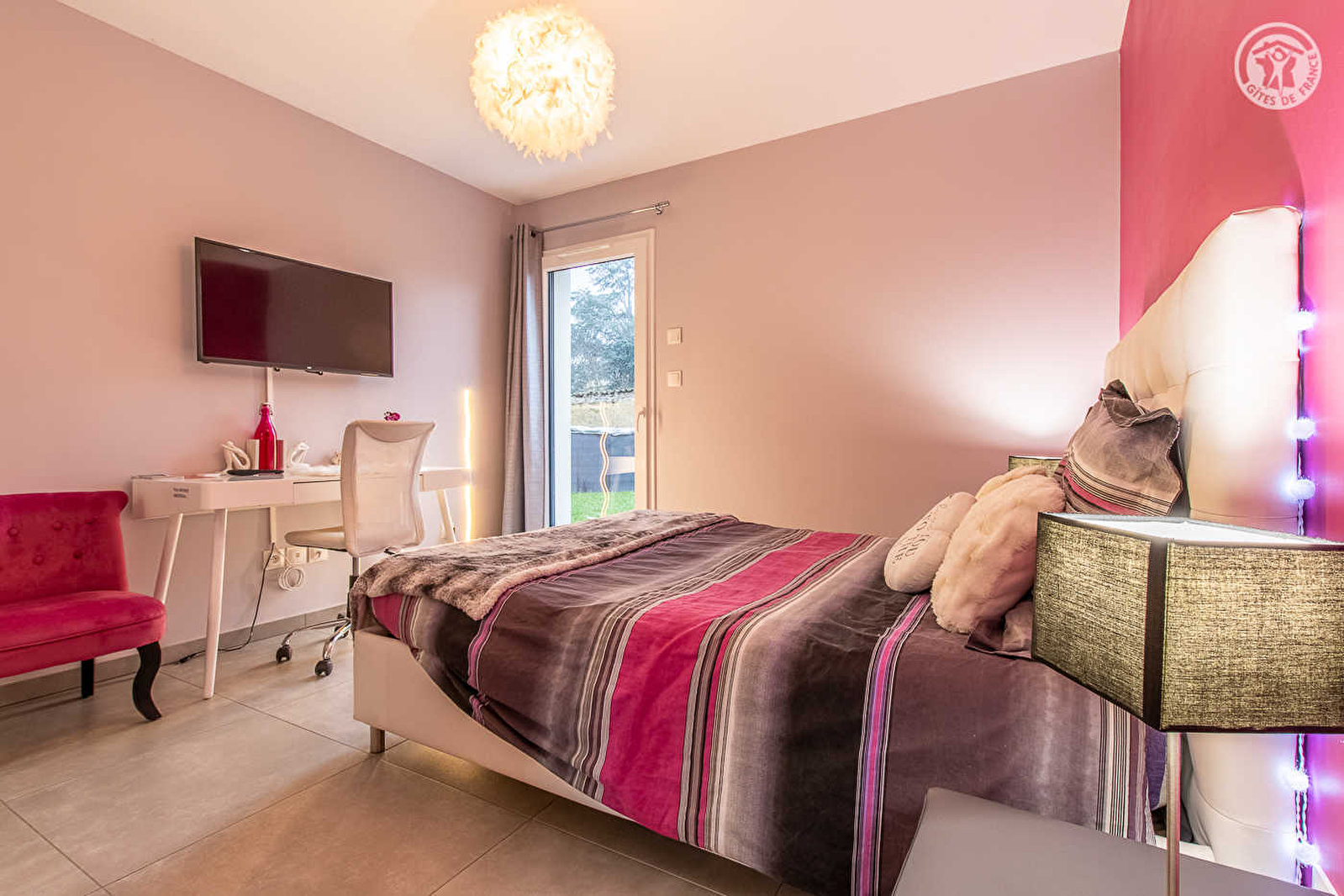 Aurélie & Mickaël vous accueillent au sein d'une élégante maison d'architecte à l'architecture « cubique » ultra contemporaine de style, sise au calme en secteur périurbain au cœur d'un paisible quartier résidentiel du sud de Mâcon. Emplacement ultra privilégié entre ville & campagne, tout à la fois proche de la magnifiques campagne mâconnaise vallonnée environnante & ses bucoliques coteaux de vignobles, blottis dans le prolongement de l'illustre somptueux joyau géologique & paysager voisin de la Roche de Solutré (doté du prestigieux & rare label « Grand Site de France »), comme de l'intégralité des commerces, loisirs & services. Tranquillité & accès aisé à 3 km du centre-ville de Mâcon, la plus méridionale cité de Bourgogne lovée sur les rives de la Saône, berceau du célèbre poète Lamartine (labellisée « Station Classée de Tourisme ») riche d'un patrimoine historique notable (Église Saint-Pierre, maison de bois, Hôtel Dieu, cathédrale romane Saint-Vincent, couvent des Ursulines…), de charmants quartiers piétons à découvrir & d'un port de plaisance fluvial. Chambre de très bon confort. Chaleureux cachet contemporain. Ambiance douce & cosy. Spacieuse & confortable salle d'eau. Agréable jardin clos intimiste & soigné, niché à l'abri des regards par un historique mur d'enceinte - directement accessible depuis la chambre par une porte indépendante ouvrant sur une « mini » terrasse privative - disposant d'une large terrasse (exposée & ombragée) et d'une belle piscine hors-sol (5m de diamètre).