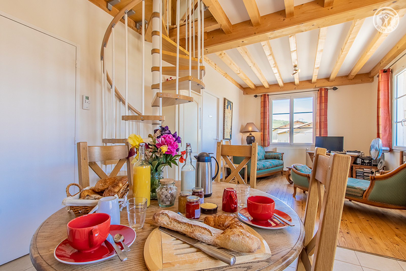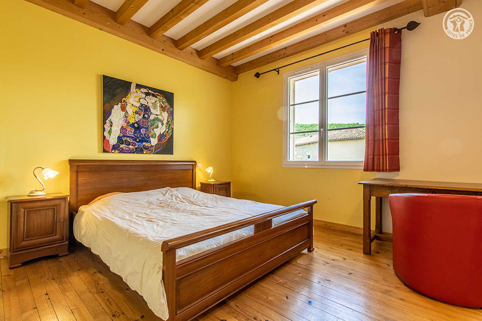 Composition : Maison indépendante comprenant 2 chambres d’hôtes en accès totalement indépendant sur petit domaine viticole (jouxtant le cuvage, la maison des propriétaires & second logement familial occupé à l’année). Wifi. Chauffage central gaz. 2 chambre "double" au 1er étage (lit 2 p. 160x200cm dans chacune) avec salle d’eau privative (douche-Wc / 1 avec Wc indépendant). Pièce de vie commune dédiée aux hôtes avec cuisine complète & salon TV. Terrasse + terrasse abritée + local vélos. Parking privés. Restaurant "étoilé" sur place. Commodités & commerces 6 km. Supermarché 6.5 km.