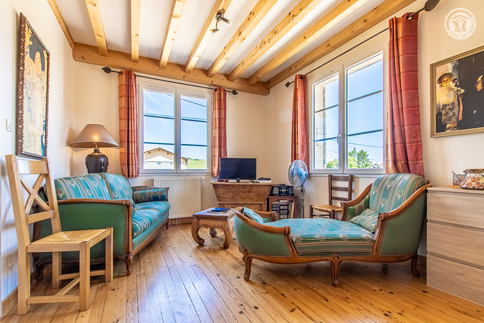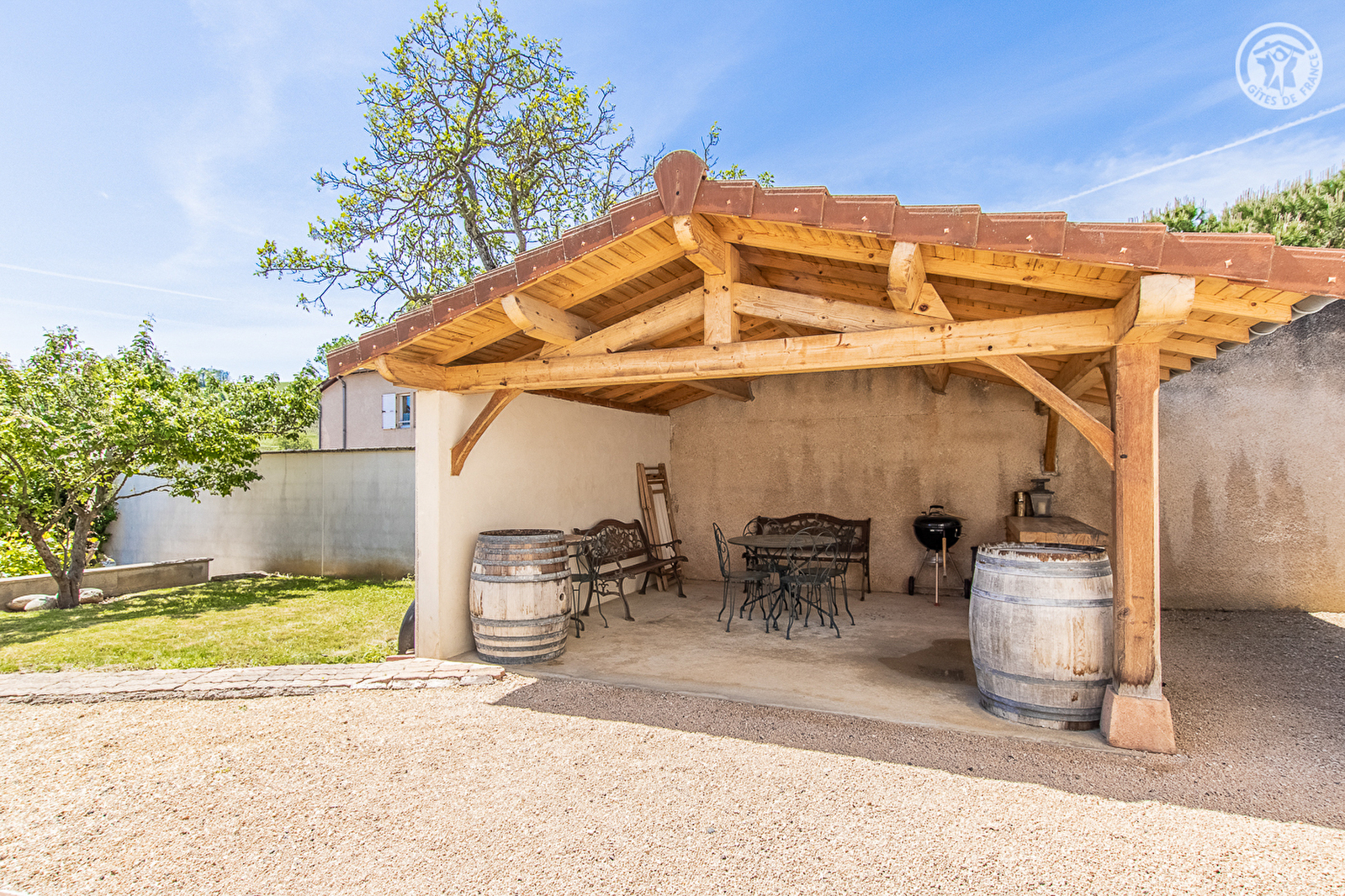 Issue d’une famille de vignerons depuis 5 générations, "de mère en fille ou presque" comme elle aime à la préciser, Sophie vous ouvre les portes de sa maison d’hôtes aménagée au sein d’une originale maison de pays de 1953 restaurée, empreinte d’une douce histoire familiale, à l’architecture "fifties" typique, blottie en lisière de vignobles sur le petit domaine viticole familial de 4.5 ha qu’elle exploite avec son mari selon les principes de l’agriculture biologiques (plusieurs AOC du Mâconnais dont les célèbres Pouilly-Fuissé & Saint-Véran / visite & dégustation possibles sur demande). Hameau résidentiel calme, à deux pas du centre du pittoresque bourg de Fuissé, pétri de charme, fleuron du célèbre cru de Pouilly-Fuissé lové dans un cadre paysagé d’exception, au creux d’un bucolique vallon de vignobles que dominent les crêtes boisées d’un massif forestier classé et protégé en "Zone Natura 2000" & ZNIEFF. Somptueux panorama & paysages alentour. Cadre viticole de toute beauté, totalement apaisant. Lumineuses chambres de bon confort offrant de belles vues sur les vignobles environnants. Chaleureux cachet campagnard. Spacieuse et agréable pièce de vie dédiée aux hôtes, dotée d’une cuisine compète et d’un espace salon cosy. Vaste cour (littéral terrain de pétanque naturel) proposant un espace terrasse-jardinet (en pelouse synthétique) et une large terrasse abritée (avec cuisine d’été).
