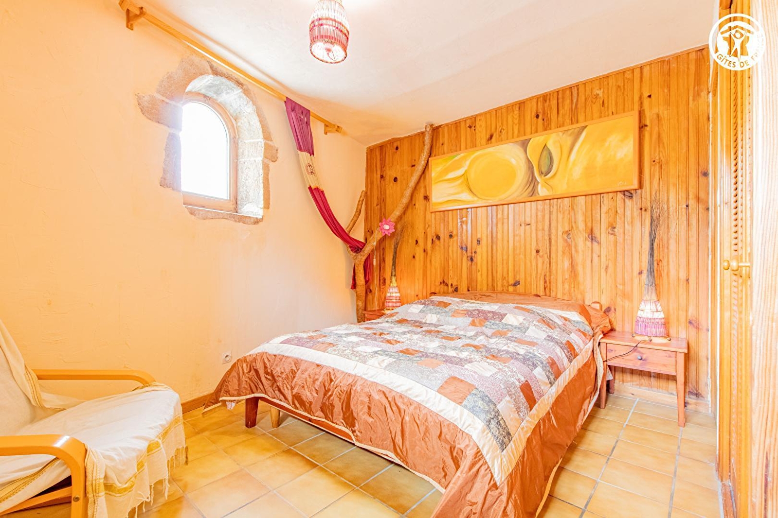 Composition : Maison comprenant 2 chambres d'hôtes familiales + un petit gîte (totale indépendance). Wifi. Chauffage électrique. Chambre au rdc (lit 2 p. 140x190cm + lit 1 p. 90x190cm / 2 espaces couchages bien séparés) avec salle d'eau privée (douche/Wc). Chambre duplex avec cheminée au 1er étage (lit 2 p. 140x190cm + 2 lits 1 p. 90x190cm / 2 espaces couchages bien séparés dont une mezzanine) avec salle d'eau privée (douche/Wc). Pièce de vie au rdc avec cuisine commune en accès libre (four/plaques + micro-ondes + lave-vaisselle + réfrigérateur) & poêle à bois. Courette-terrasse close (+ terrasse abritée). Local vélos. Parking public aisé. Restaurants 4.5 km. Supermarché 8.5 km. Commodités 11 km.