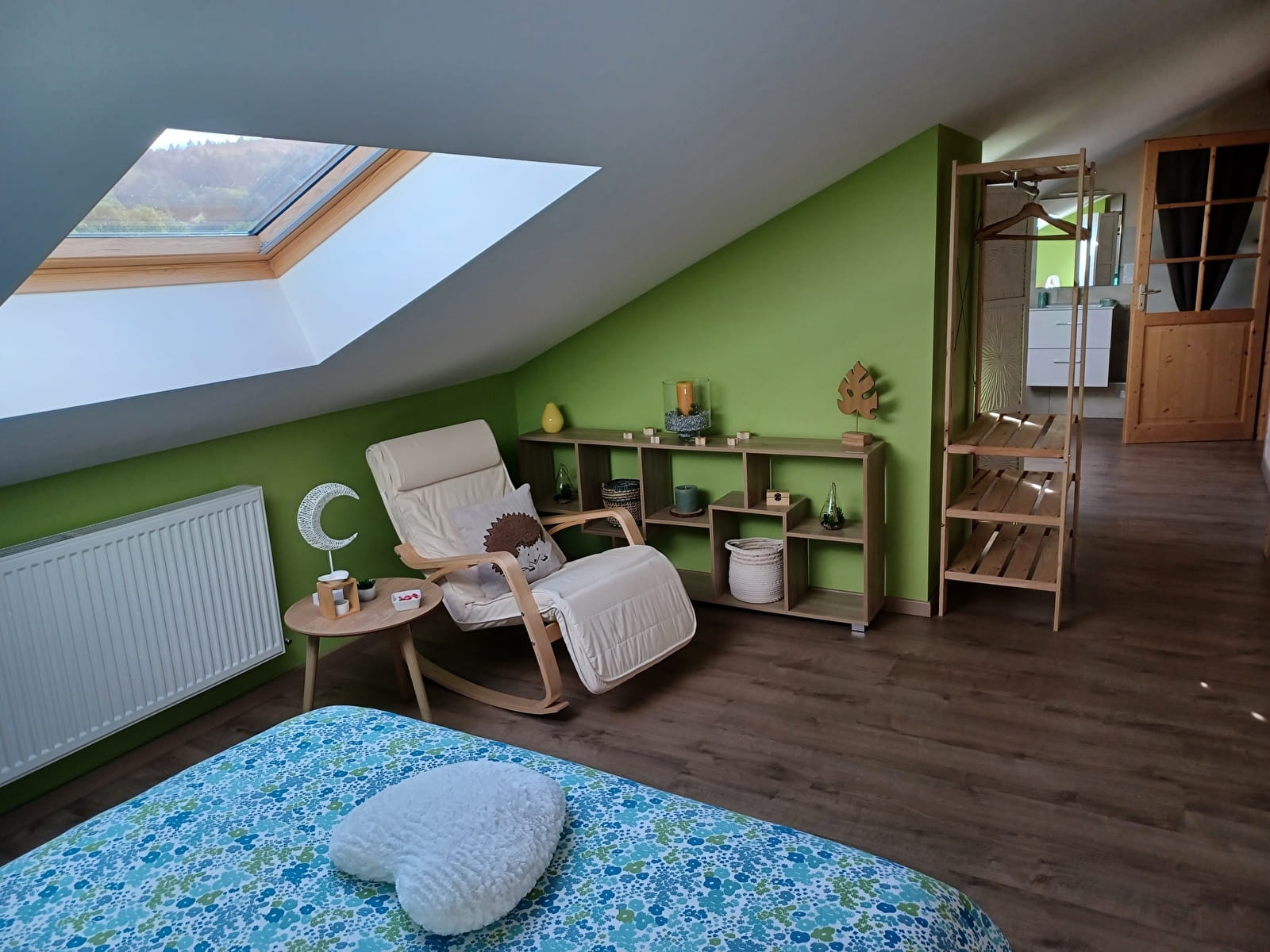 Chambre d'hôtes avec 5 chambres doubles dont 2 avec entrée individuelle. Chaque chambre dispose d'une salle de bain avec WC. Les 2 chambres avec entrée séparée disposent d'une salle de bain commune avec WC et une entrée avec petit salon. Le petit déjeuner est inclus dans le prix de la nuitée. La table d'hôtes est disponible sous réservation pour le repas du soir, avec des produits frais, de la région et préparés par nos soins. Il est possible de préparer des paniers repas pour le midi sous réservation. Nous disposons d'un espace détente avec sauna et autres services et un extérieur aménagé. Les ateliers culinaires sont aussi disponibles dès à présent! (Voir Papillon Gourmand Atelier Culinaire)