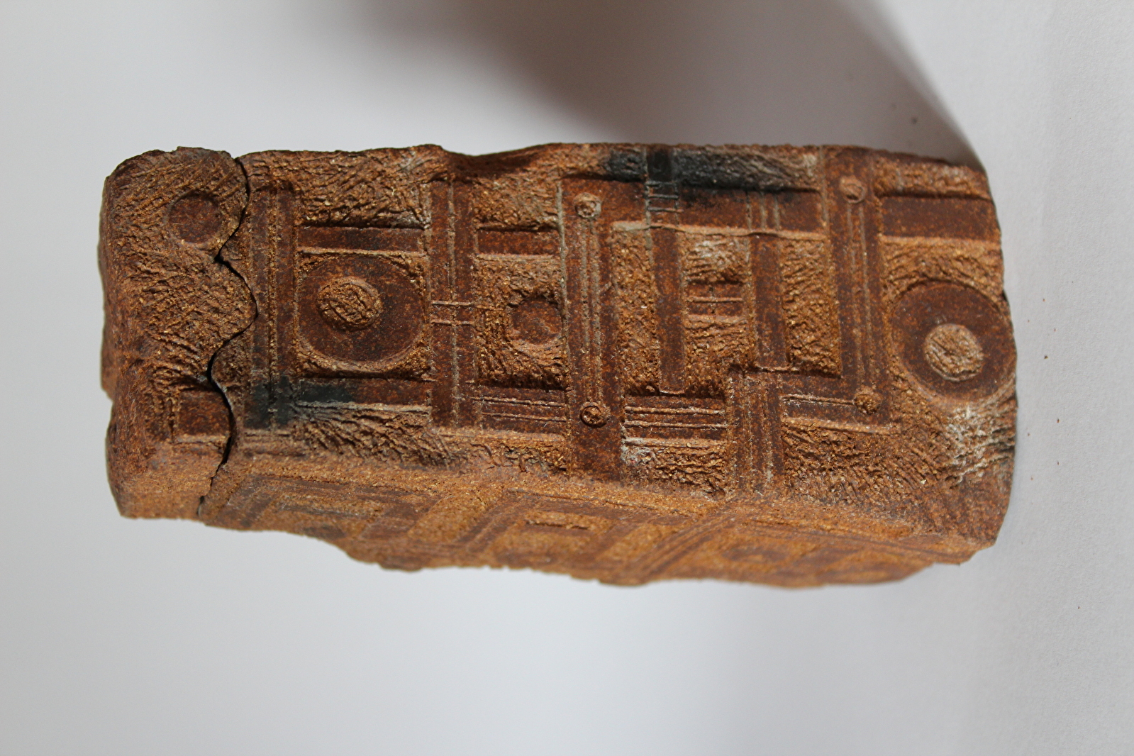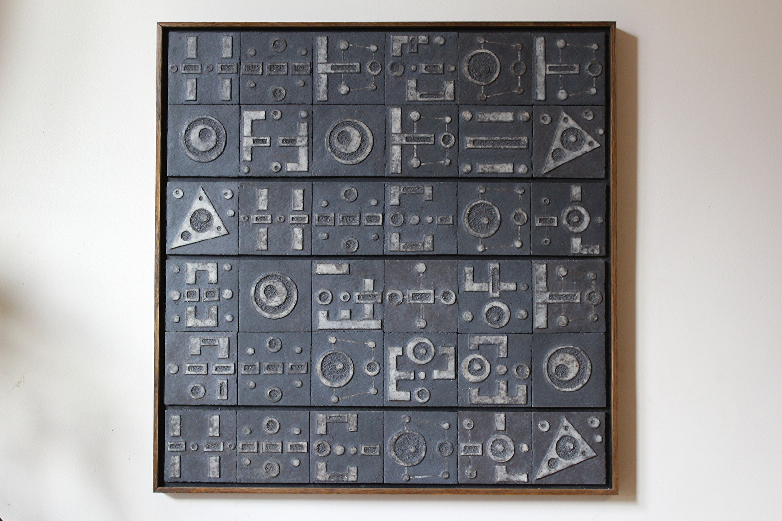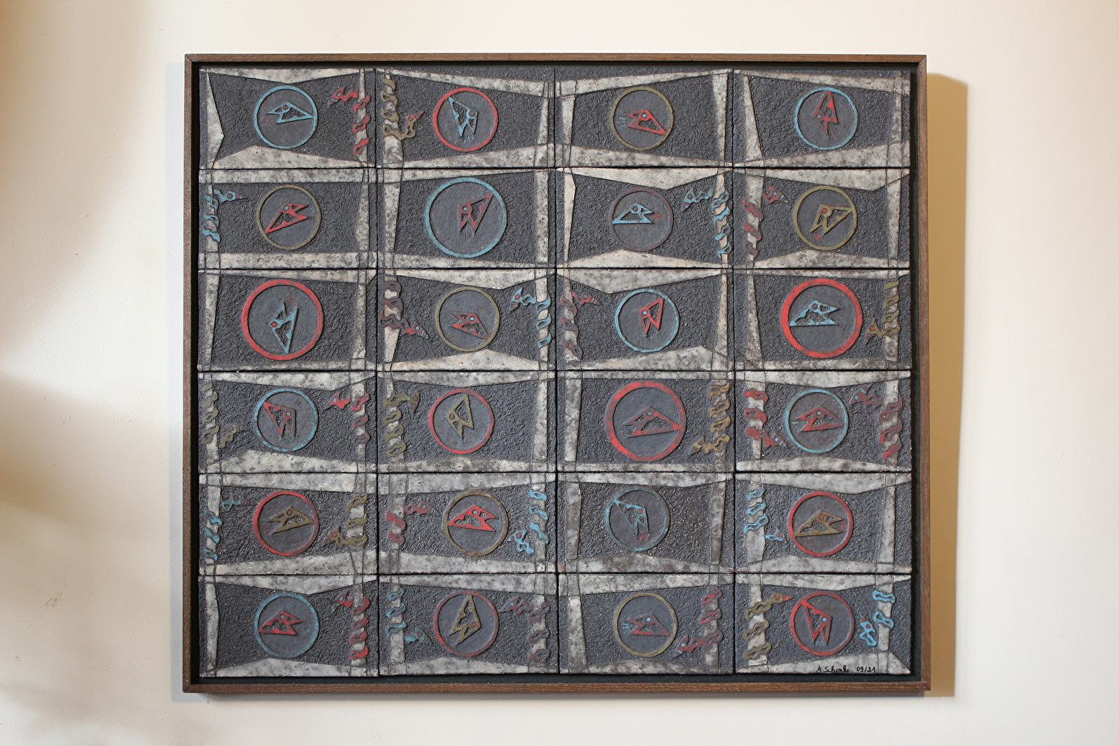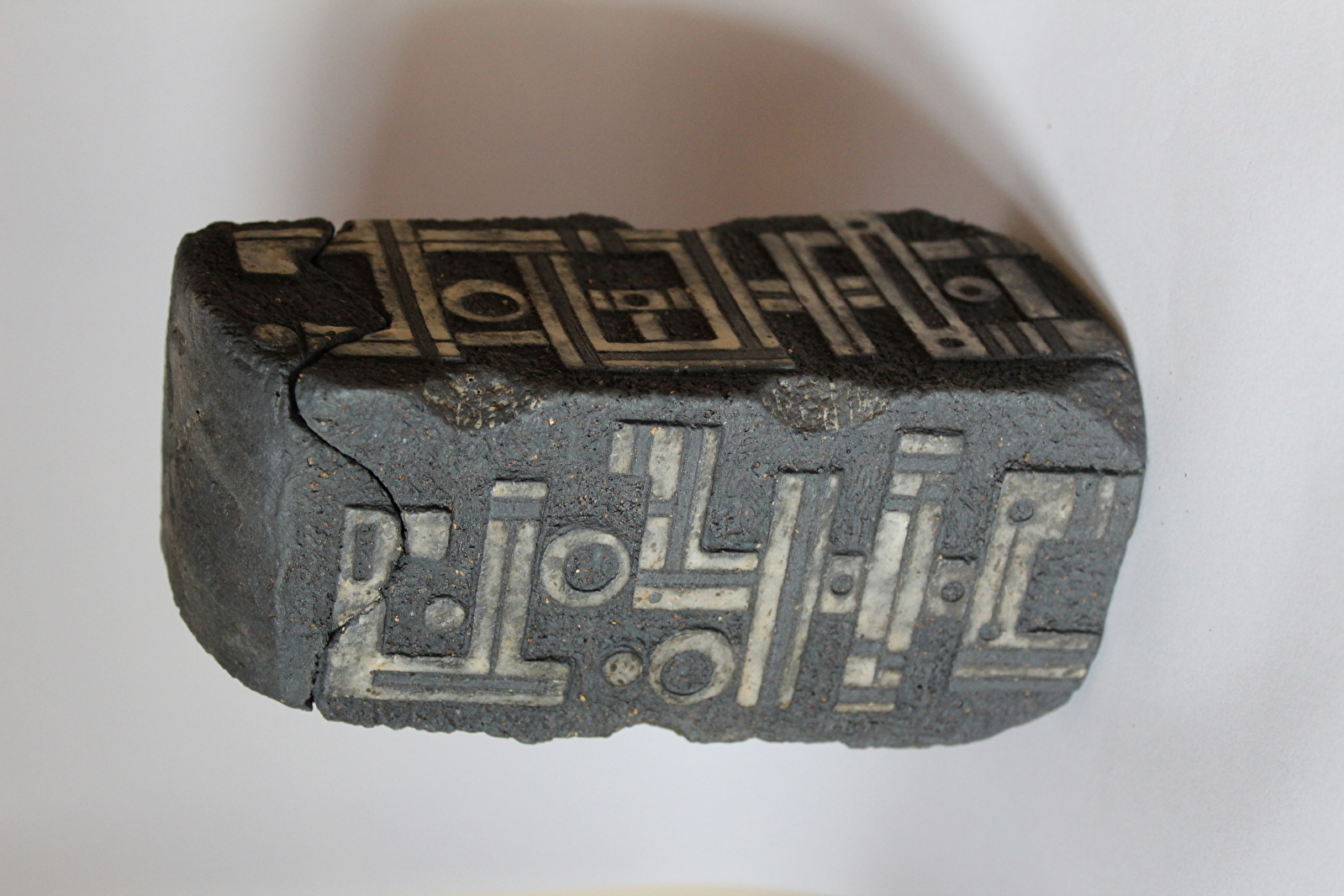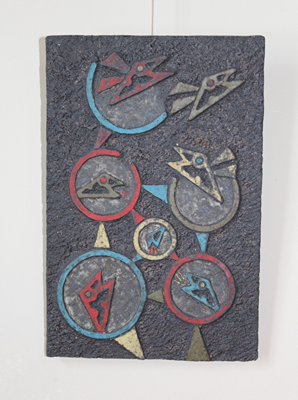 Les graphismes de mes sculptures guident aujourd'hui mon travail céramique. Il s’agit souvent de sculptures en bas relief réalisées sur de petits carreaux de terre, que j’assemble ensuite sur des supports en bois (cubes, colonnes, tableaux). Je travaille également en bas relief sur mes sculptures réalisées directement sur un bloc de terre ou sur mes boîtes. Mes graphismes sont spontanés mais enrichis ensuite par un travail lent et minutieux. Ils traduisent ce que je perçois du monde.