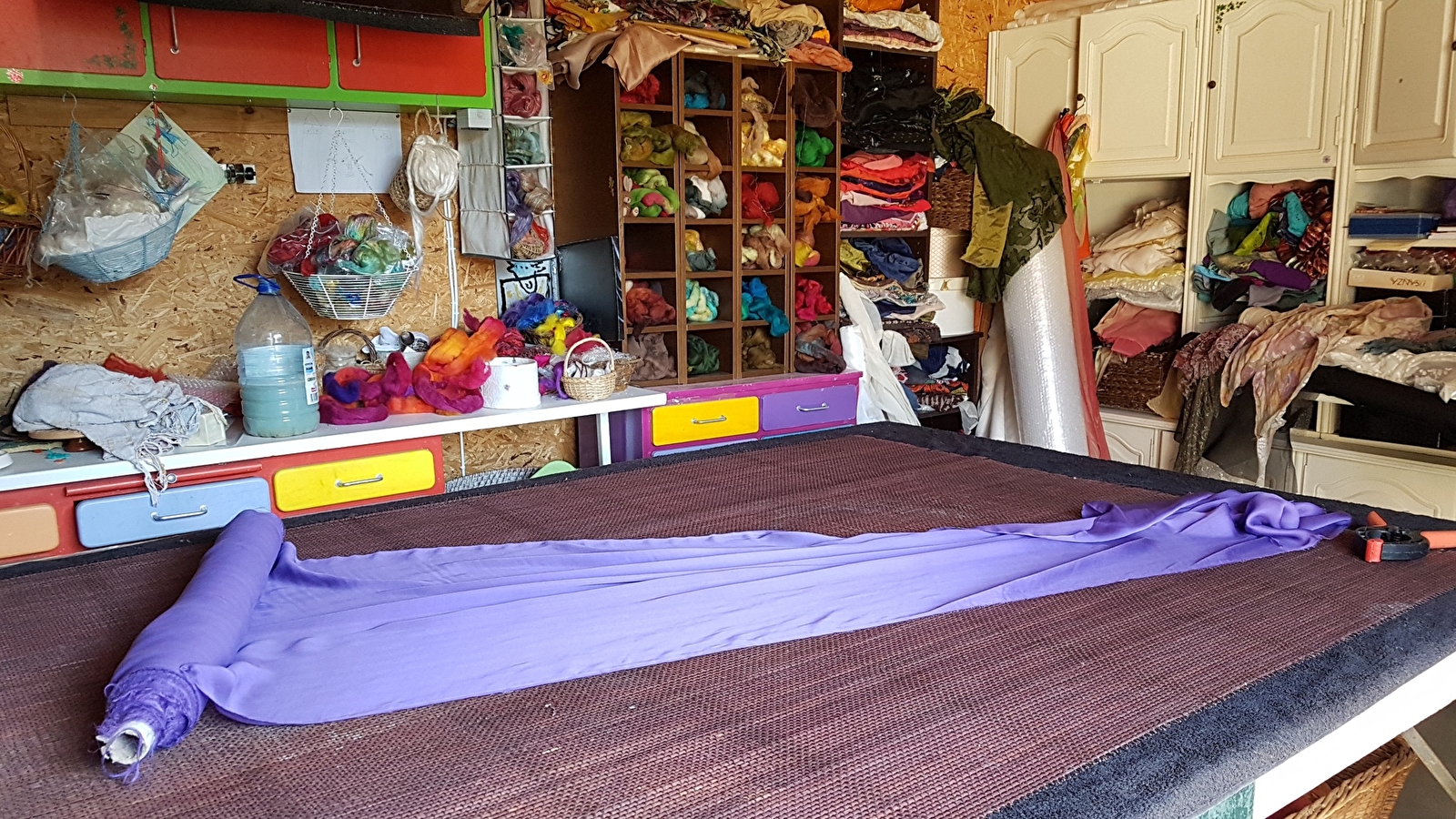 Dans son atelier, Valérie Lamotte combine avec un grand savoir-faire stylisme et art du feutrage. Robes, chemises, pulls, écharpes, rideaux, paravents, plaids... son champ d'activité est si vaste qu'il semble infini ! Dans tous les cas, Valérie vous aidera à trouver des solutions adaptées, colorées et authentiques à vos envies !