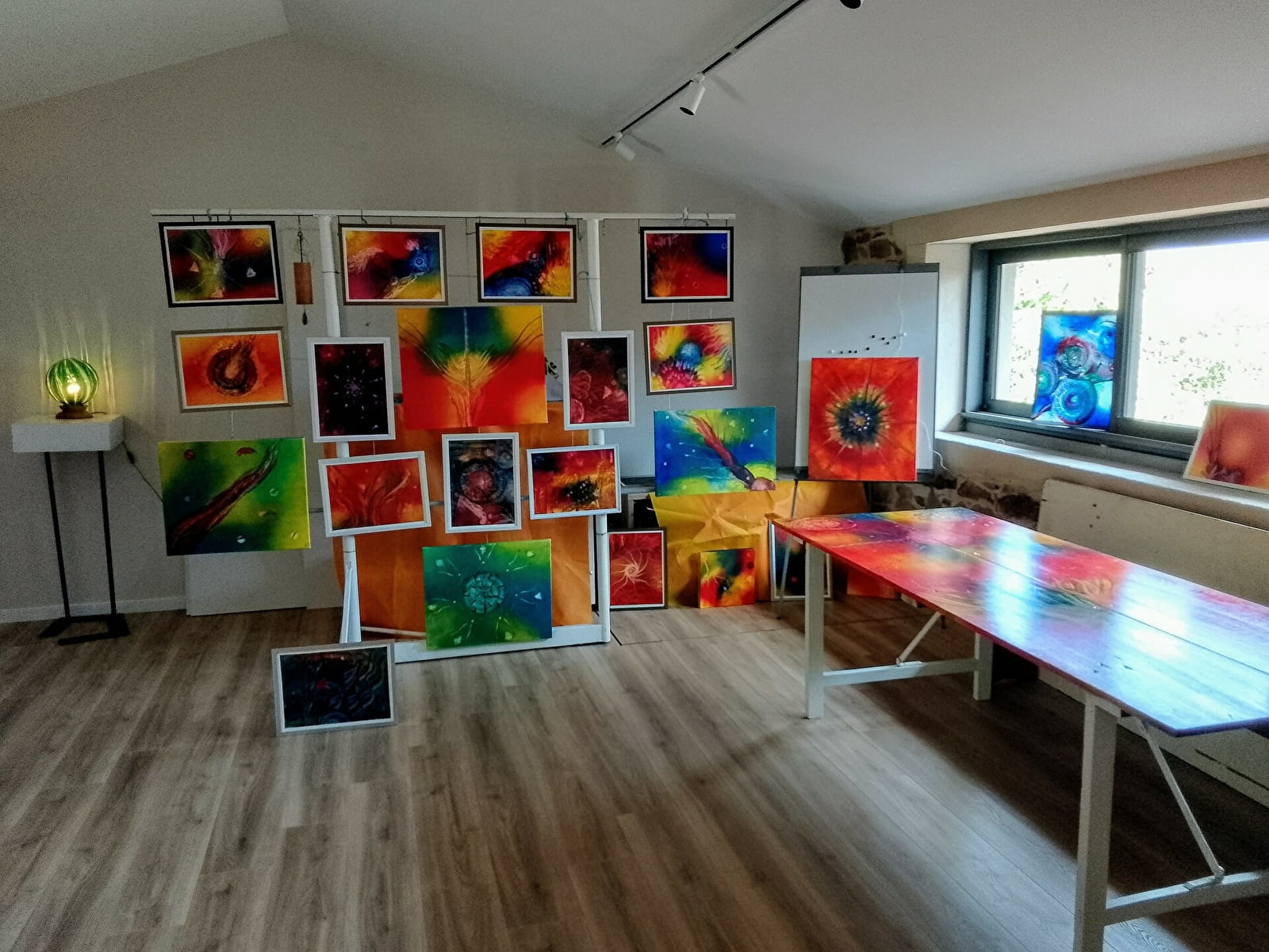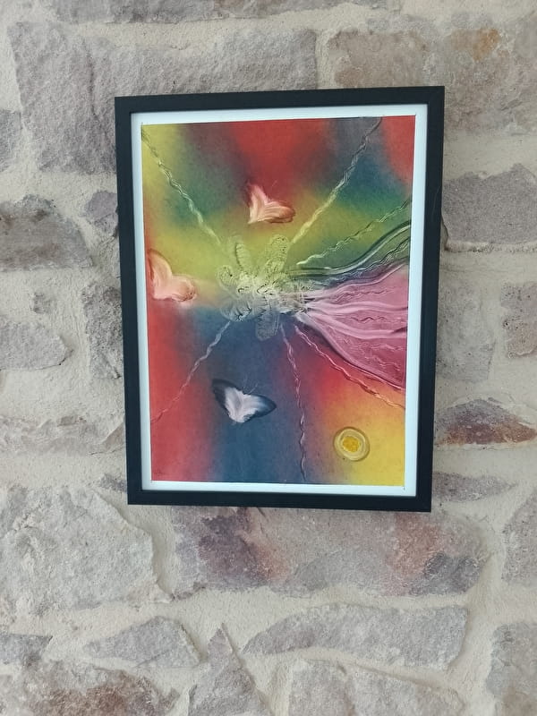 Le fait de toucher la matière, la peinture, de regarder le jaune, le rouge, le bleu et toutes les couleurs qui en découlent entre en vibration avec vous, avec votre corps qui est également vibrations.