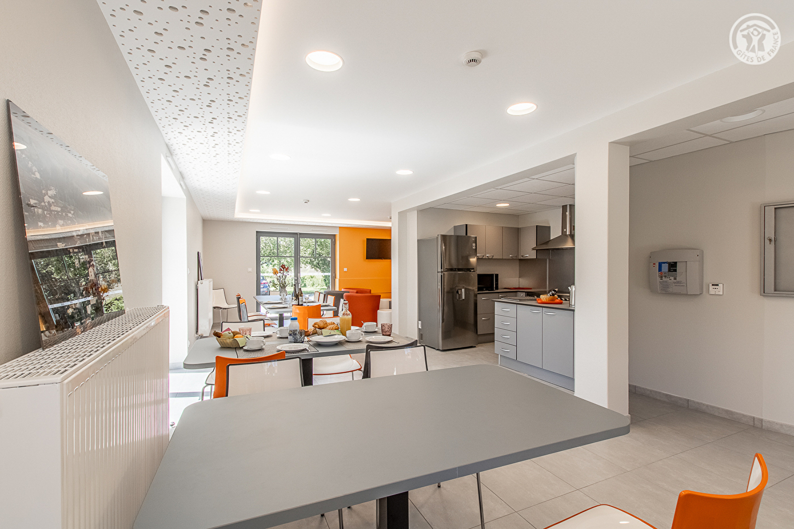 Composition : Maison de village mitoyenne. Wifi. Chauffage PAC. Rdc : Séjour-cuisine-salon, chambre PMR (2 lits 1 p. 80x200cm) avec salle d'eau PMR privative, Wc PMR indépendant, salle de jeux (baby-foot), buanderie. 1er étage (accessible par l'extérieur) : 5 chambres (3 comprenant 2 lits 1 p. 80x200cm / 4 lits 1 p. 80x200cm / 3 lits 1 p. 80x200cm), toutes dotées de salle d'eau privative (douche/Wc). Tous les lits sont jumelables en lit double 2 p. 160x200cm. Balcon-terrasse + local vélos privés. Parking + jardin public sur place. Toutes commodités 5 km.