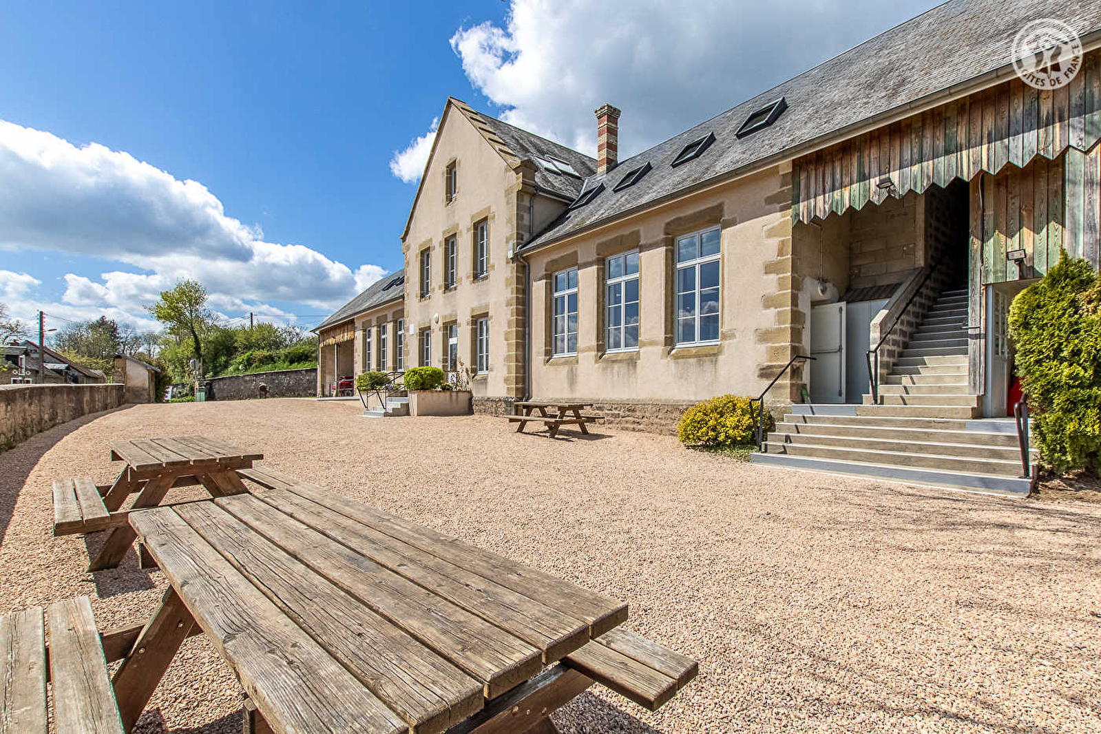 Vaste gîte de groupe communal niché au sein d'une authentique ancienne école de village de caractère fin XIXe pétrie d'histoire, typique de la IIIème République, blottie à flanc de coteau sud bien exposé dominant "en balcon" panoramique un verdoyant vallon préservé du Haut Morvan. Calme & totale tranquillité en pleine campagne au sein d'un paisible petit hameau rural, lové en lisière de prairies sous les crêtes boisées des forêts sauvages voisines, à 5.5 km du charmant bourg commerçant d'Anost (nombreuses commodités), riche d'une église romane classée du XIIe (abritant les célèbres Gisants d'Anost, chef d'œuvre du XVIIIe), résidence de nombreux artistes. Magnifique cadre & site naturel préservé. 100% relaxant & reposant. Possibilité d'observer la faune sauvage sur place (chevreuils, sangliers, renards, blaireaux…). Gîte de bon confort. Spacieux & lumineux. Cachet contemporain sobre "twisté" par un camaïeu de couleurs côté chambres. Grande cour exposée close & sécurisée (avec portail) abritant un large espace terrasse en partie ombragé & un terrain de pétanque naturel. Magnifique vue dégagée sur la campagne environnante dont le Haut Folin (point culminant du Morvan). Splendide panorama & paysages.