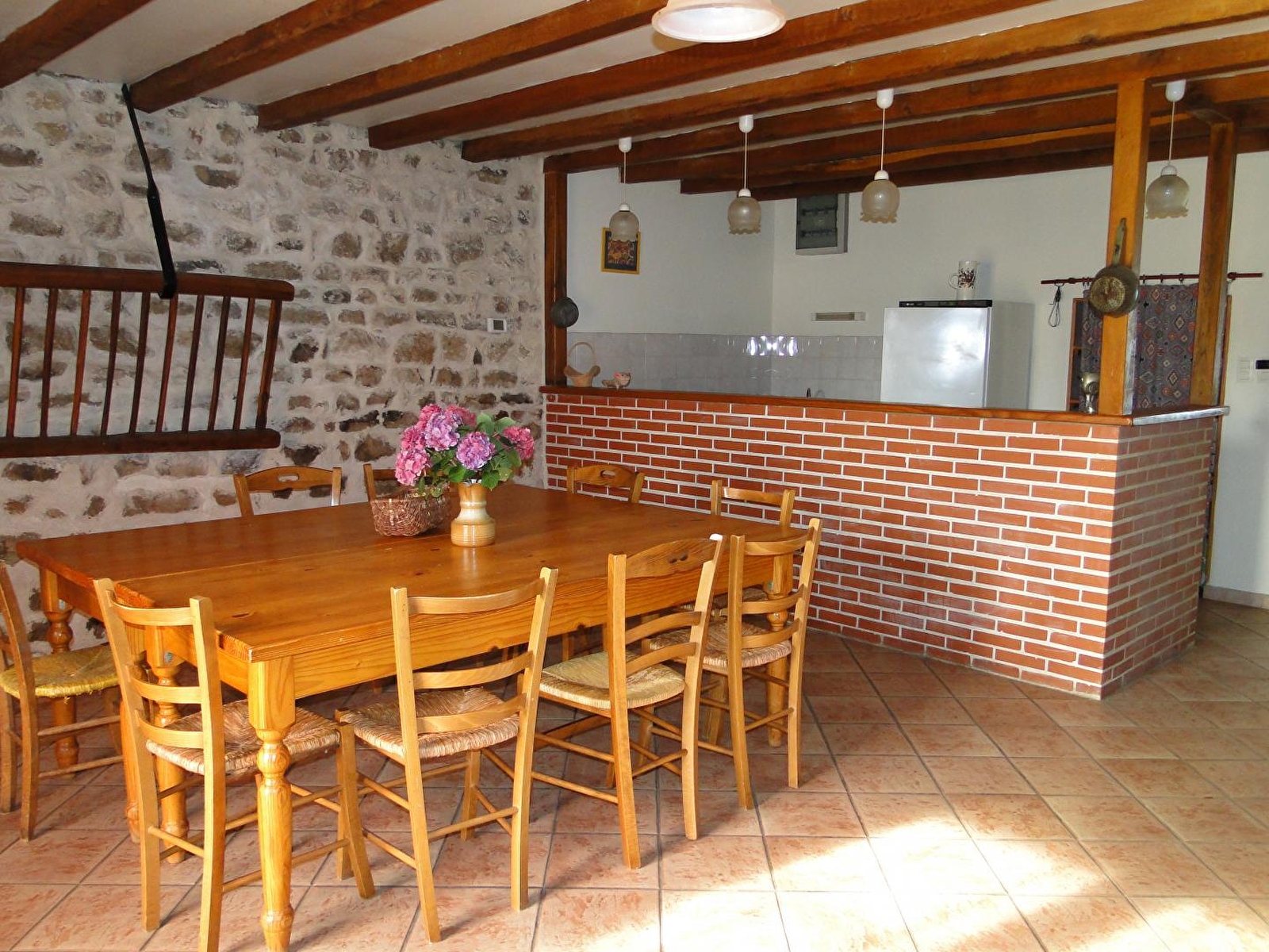 Gîte de séjour aménagé dans une ancienne exploitation agricole à proximité du propriétaire. Rdc : 1 salle de détente, 2 salles de séjour (dont 1 coin-cuisine, bar), 1 cuisine équipée (Lave-vaisselle professionnel), 1 wc indépendant, 1 chambre PMR 2 pers disposant d'une salle d'eau PMR privative (douche), une salle de bain (baignoire). 1er étage : 2 chambres (2 pers.), 2 chambres (4 pers.), 1 dortoir (8 pers.), 1 mezzanine (3 pers.), Salle de bain privative dans chaque chambre, wc. Terrasse. Parking. Sentiers GR7, Balades vertes sur. place Lac, pêche, tennis, équitation 8 km. Commerces & services 1 km. Téléphone (carte FT). Espace clos et aménagé (jeux). Mini-golf. Espace jeux de boules. Possibilité location à la nuitée avec petit-déjeuner en mode "gîte d'étape" (28€ la nuitée / 7€ le petit-déjeuner).