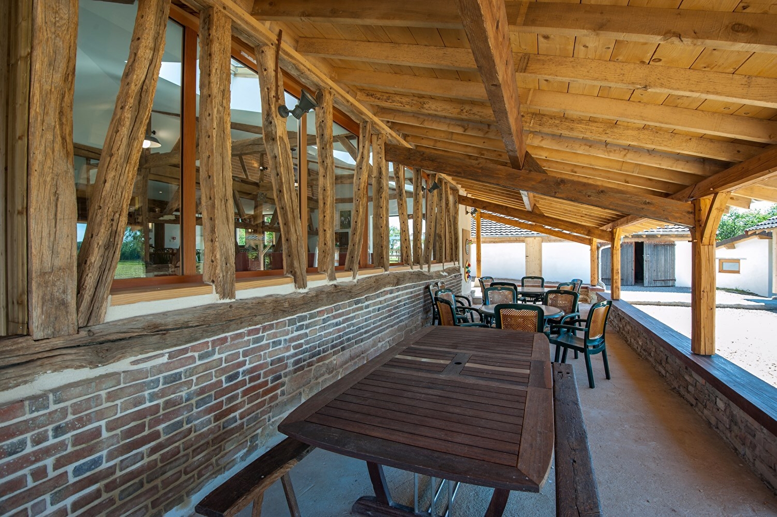 Élégante ferme bressane traditionnelle du XIXe, à briques & pans de bois, intégralement restaurée avec soins, sise au calme sur un ancien domaine agricole réhabilité, au creux d’un paisible mini hameau rural. Totale tranquillité, blotti en pleine campagne louhannaise, en lisière de champs, forêts et prairies, entre agriculture & pleine nature, non loin du centre du village, charmant bourg typique riche d’un bucolique étang de pêche parfaitement aménagé (paillote, table pique-nique, parcours santé, terrain pétanque, sentier de pleine nature). Belle propriété de 1500m² proposant une terrasse panoramique abritée de 35m², une grande cour, un exceptionnel terrain de pétanque "éclairé" (nocturnes possibles !) et un agréable jardin engazonné. Belle vue dégagée sur la douce campagne environnante. Ravissant panorama & paysages. Nombreux équipements de loisirs : baby-foot, badminton, mini ping-pong, molkky etc… avec d’insolites jeux traditionnels en bois en bonus (billard hollandais, passe-trappe & montagnes russes). Très bon confort. Spacieuse & lumineuse pièce de vie de 90m² dotée d’un beau volume, au chaleureux cachet campagnard sublimé par une belle restauration patrimoniale (charpente, colombages & briques d’origine). Chambres avec salles d’eau privatives, aménagées dans un esprit contemporain très zen, dont certaines lovées sous les toits en mode "cocon".