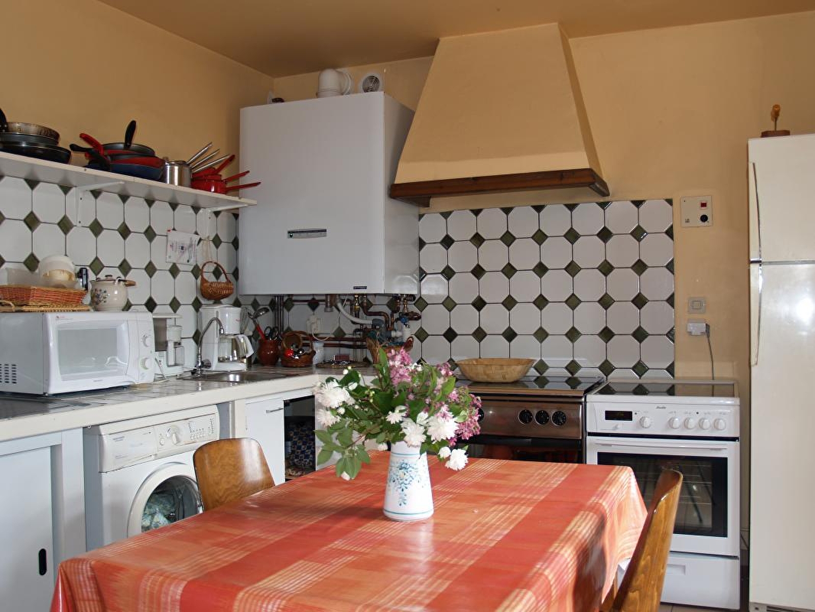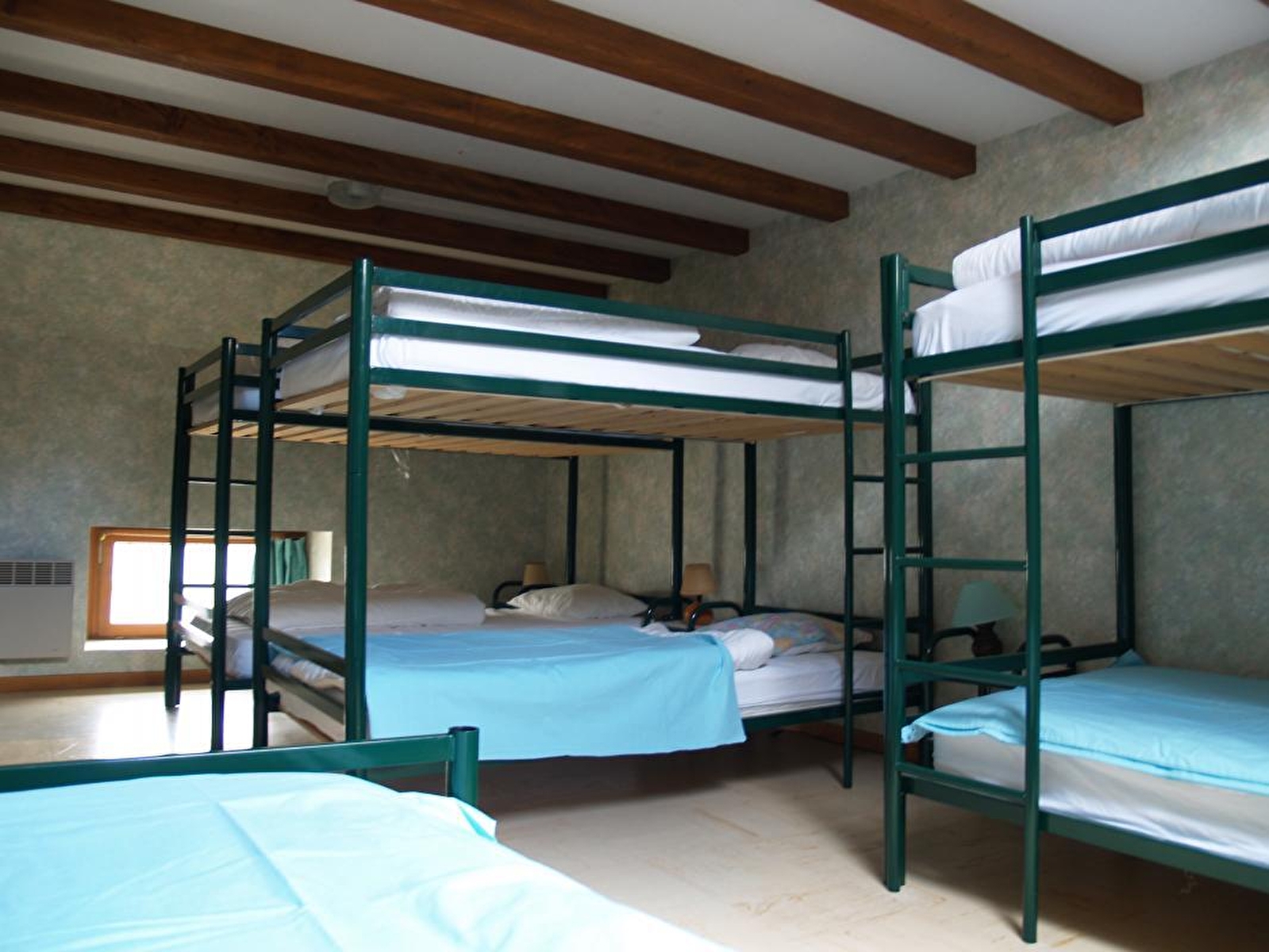 Composition : Maison individuelle. Wifi (fibre). Chauffage central gaz (+ électrique dans chambres). Rdc : cuisine, salon, séjour, 2 espaces douches (indépendantes), 2 Wc indépendants (dont PMR). 1er étage : 6 chambres (3 comprenant 1 lit 2 p. 140190cm / 2 lits 1 p. 90x190cm / 3 lits 1 p. 90x190cm dont 2 superposés / 7 lits 1 p. 90x190cm dont 3 x 2 superposés avec 2 lavabos indépendants), salle d'eau (douche), 2 espaces lavabos, 2 Wc indépendants. Terrasse + terrasse couverte + espace repas abrité sous tente + terrain clos (cour & jardinets) + parking privés. Petits commerces & supermarché 10 km. Tarif : base 1 nuit 467€ / 15€ par personne par nuit supplémentaire.
