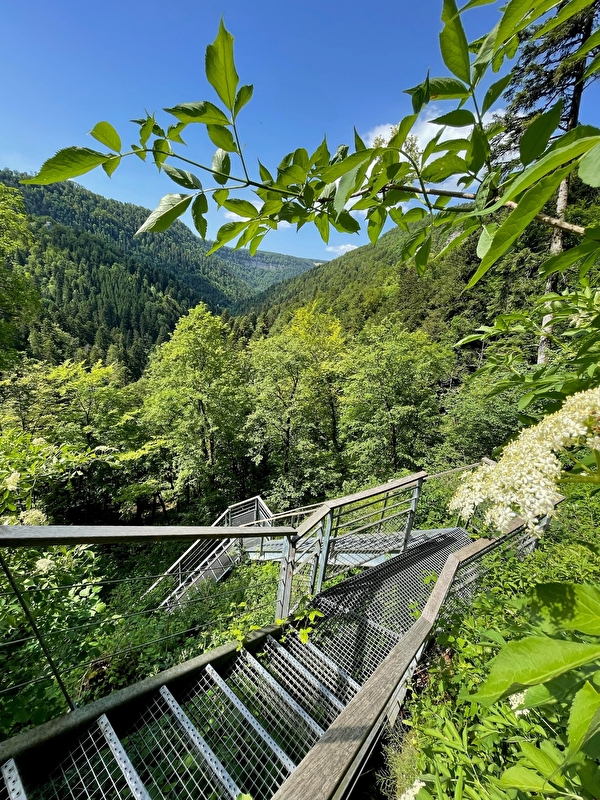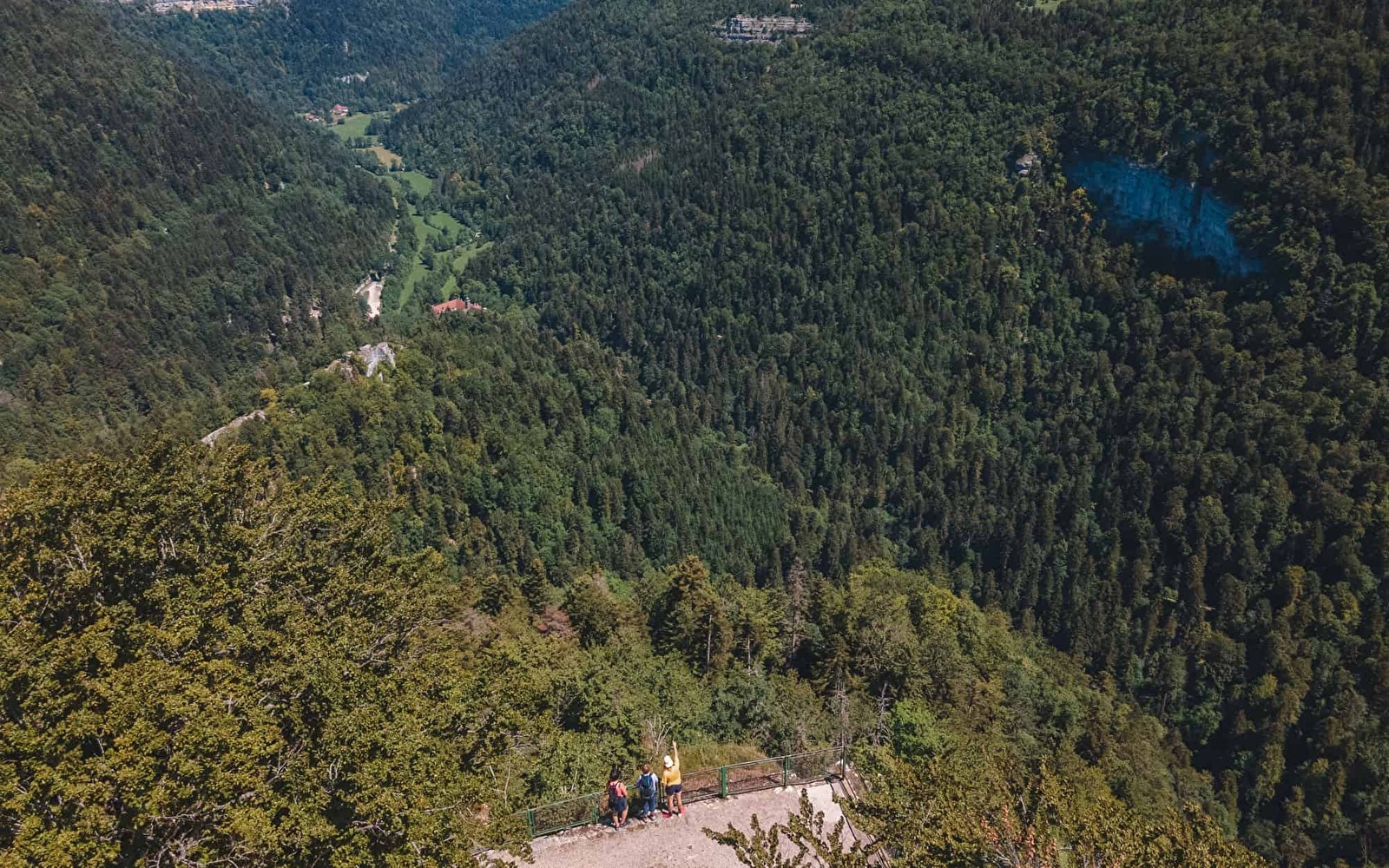 Ce parcours de sept kilomètres, vous emmènera au point culminant du Val de Consolation à 837 m d'altitude. Avant de profiter de la belle vue de la Roche du Prêtre, vous traverserez le parc du Val de Consolation, grimperez des escaliers à flanc de falaises et découvrirez la grotte du Lançot. Une randonnée difficile mais spectaculaire !