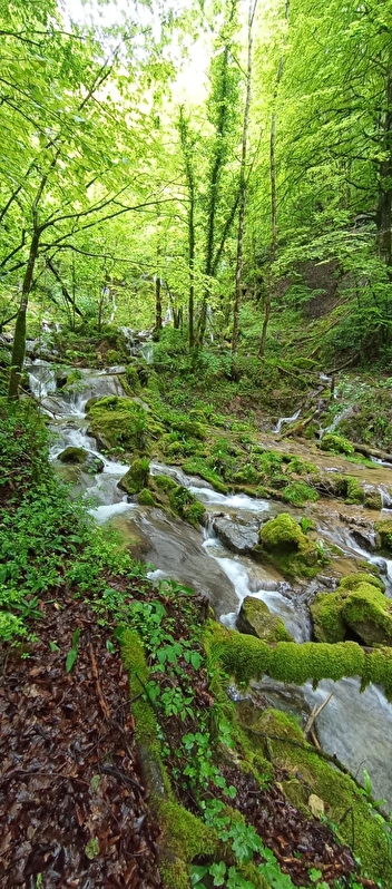 Depuis la rive gauche de la Loue, l'itinéraire remonte le ruisseau de Vergetolle et ses remarquables cascades, d'abord la Source Bleue et, plus en amont la cascade de la Tuffière. Le sentier continue ensuite dans la forêt avant de redescendre dans le vallon adjacent au bord du Raffenot. La fin de l'itinéraire gravit le chemin menant au village fortifié de Châteauvieux-les-Fossés pour ensuite redescendre à Vuillafans.
