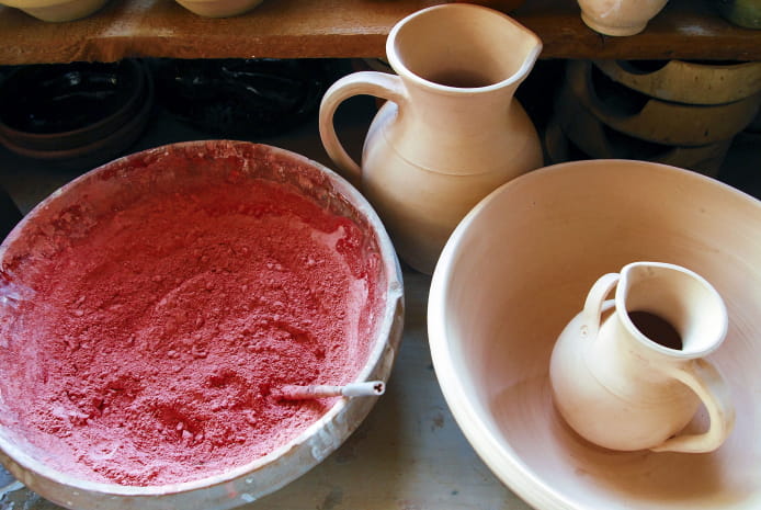 La particularité de la ressource ocrière locale réside en la présence d’une ocre pure à l’état naturel. De l’ocre jaune naît l’ocre rouge, par calcination.