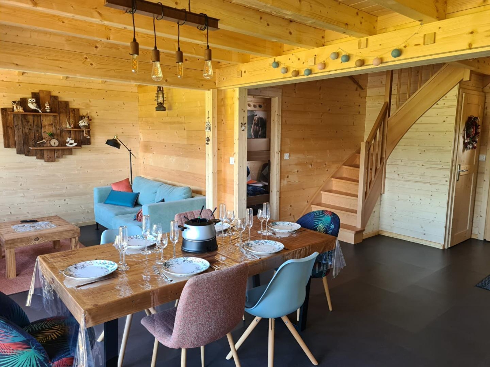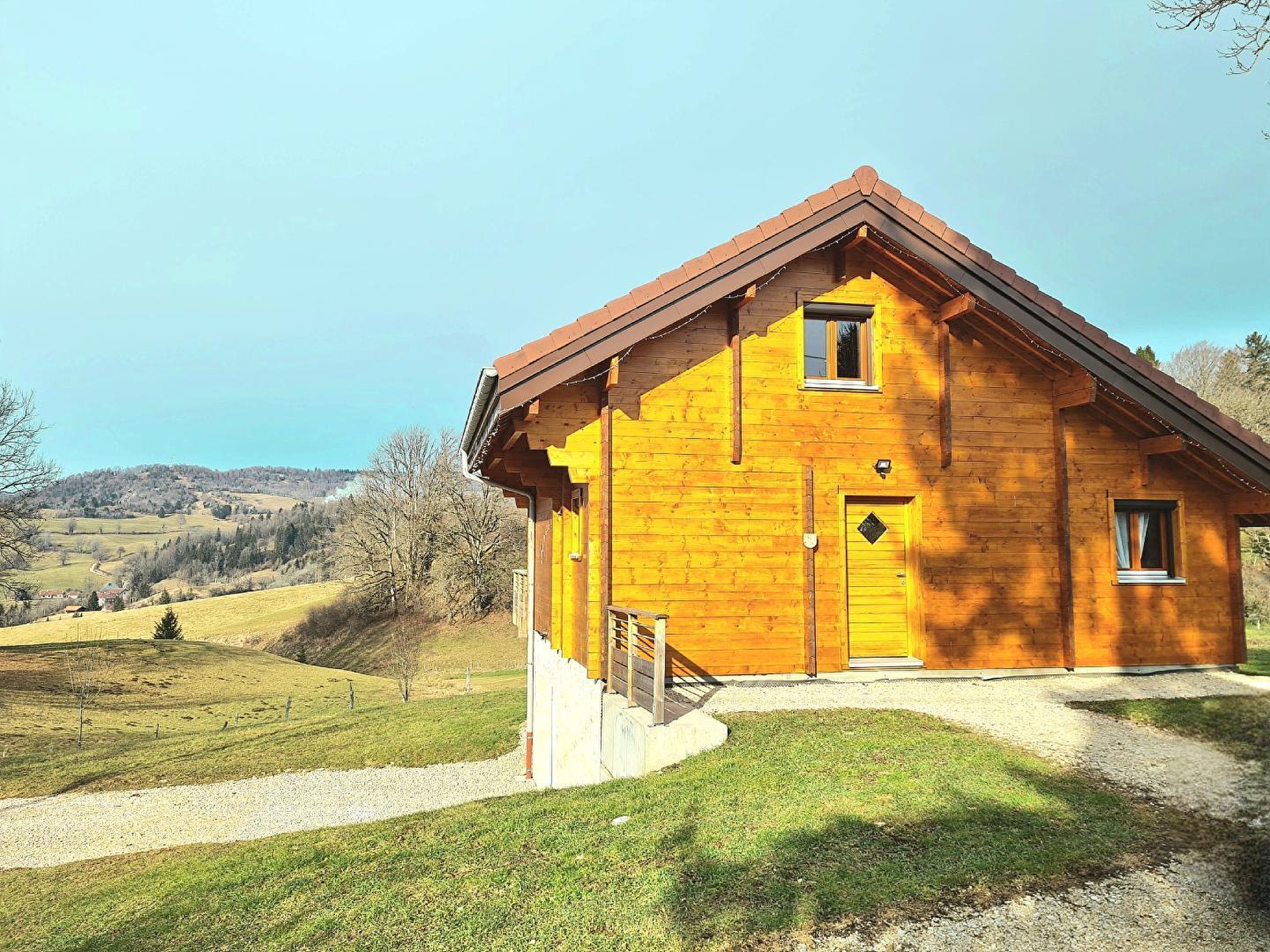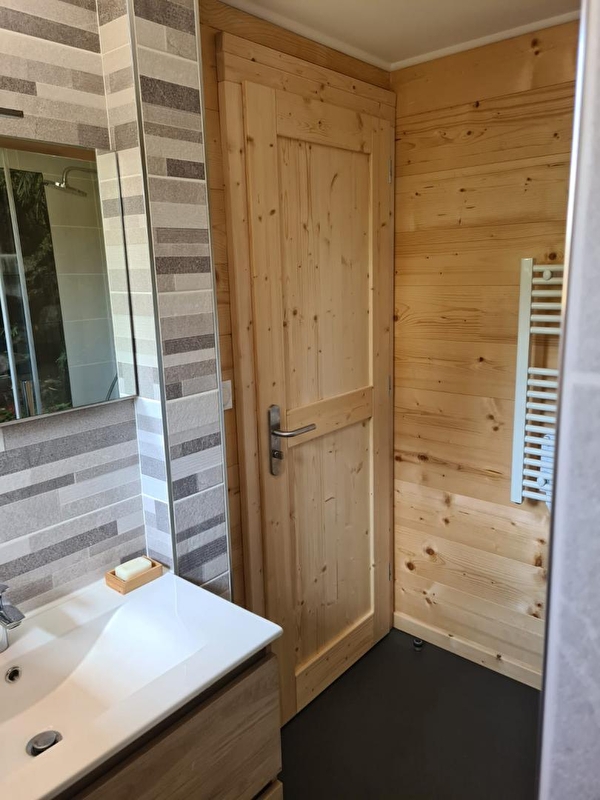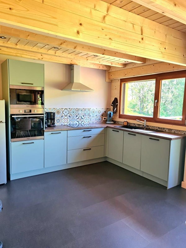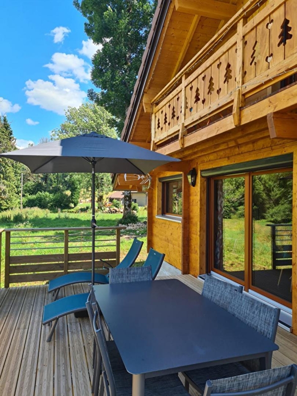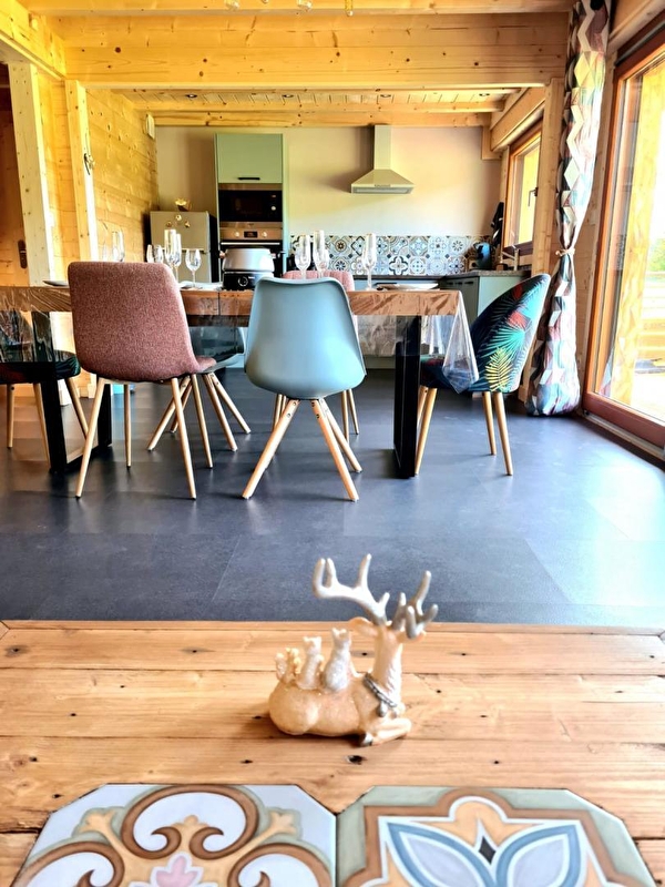 Envie de calme? Besoin de vous ressourcer? Alors bienvenue au chalet à l'Aube du Jura. Il se compose au RDC d'une pièce de vie avec salon et TV, d'un coin cuisine toute équipée, d'une chambre avec 2 lits simples (90*190) pouvant être jumelés, d'une salle d'eau avec douche et d'un WC indépendant. A l'étage, une mezzanine avec un canapé lit gigogne, et une chambre avec 1 lit double (160*200). Côté extérieur, une terrasse avec vue panoramique sur la nature environnante vous permettra de profiter de la quiétude des lieux. Elle est équipée d'un salon de jardin, de transats et de barbecue. Garage fermé pour voiture, vélos, motos... Idéalement situé, à 5 kms vous trouverez tous les commerces (restaurant, supermarché, fromagerie, bureau de tabac...), des sentiers VTT, ski de fond et raquettes et un fil neige pour l'apprentissage du ski de descente. Le parc polaire de Chaux Neuve, les gorges de la Saine et de la Langouette se trouvent à une quinzaine de minutes