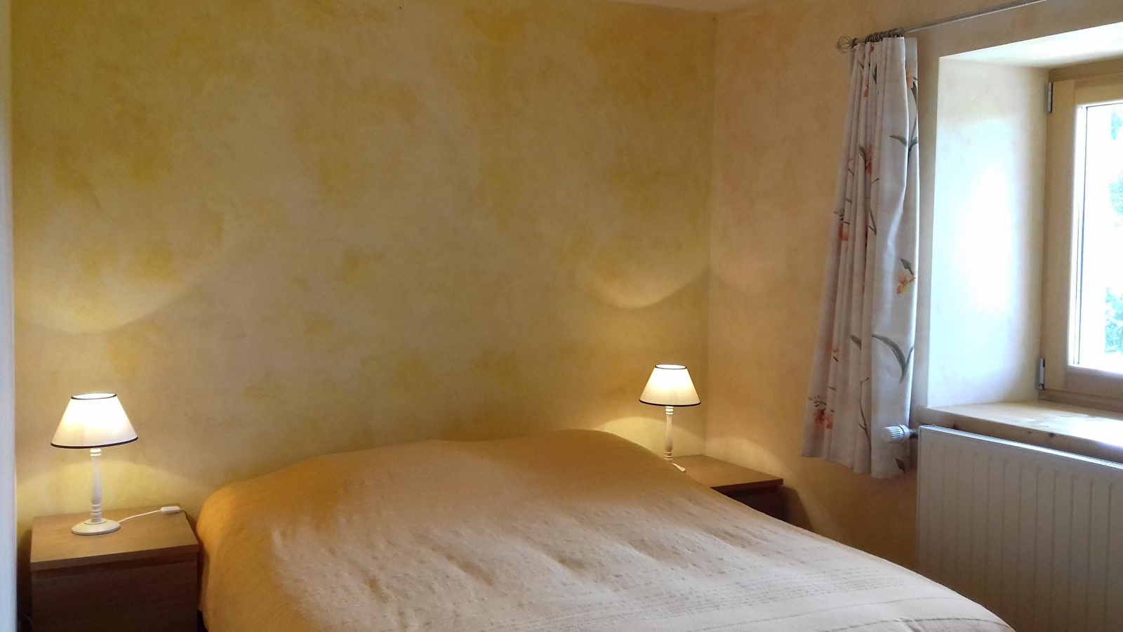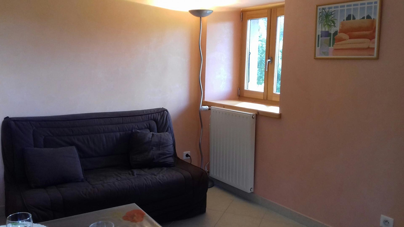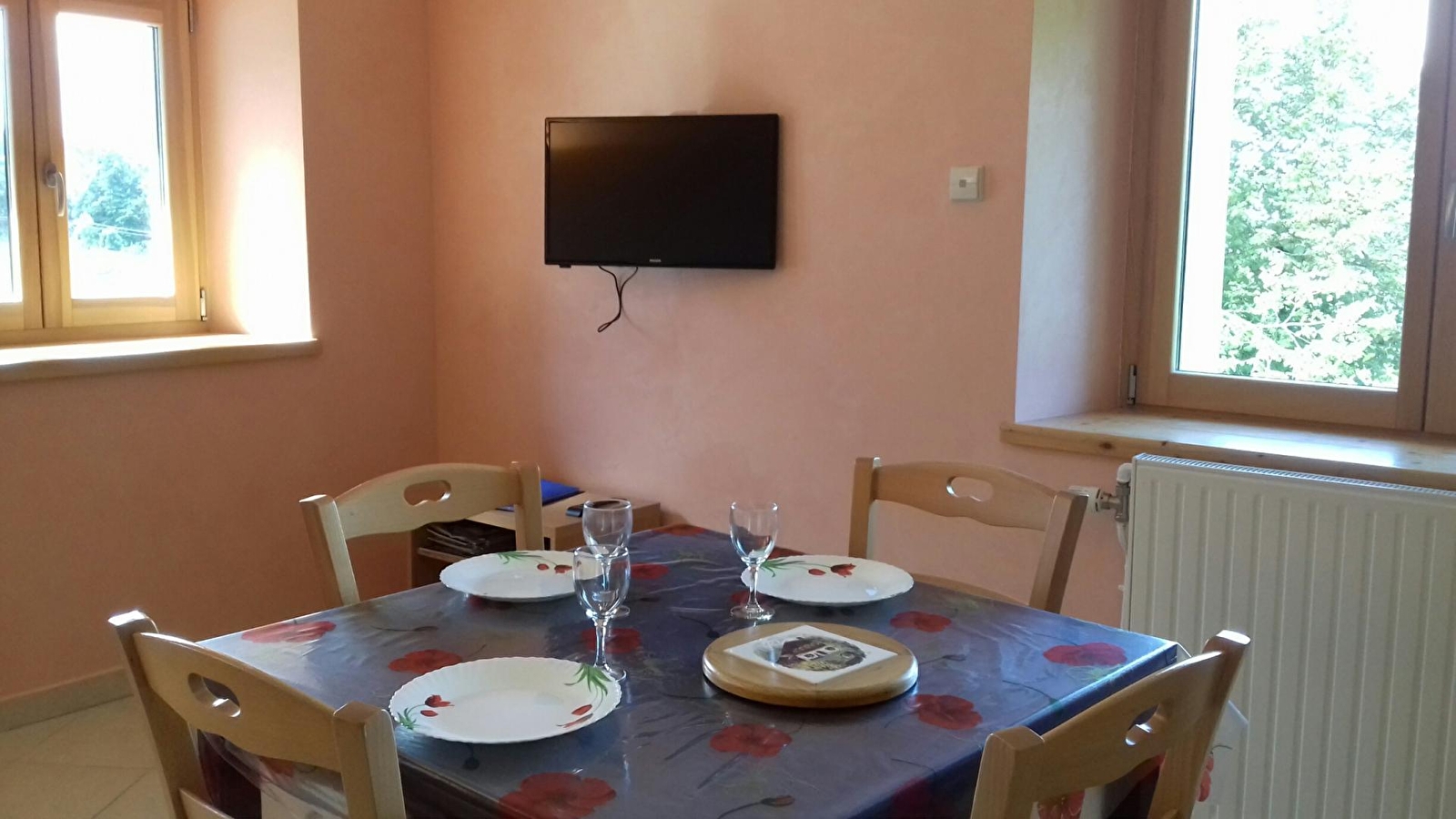 Appartement situé au 1er étage de la maison du propriétaire où se trouve un autre gîte. Salon-séjour coin cuisine intégré, canapé convertible 2 pl, Ch1 : 1 lit 2 pl, salle d'eau, wc indépendants, machine à laver et sèche linge communs à plusieurs appartements. Chauffage central, terrain attenant non clos, parking privé, cour, terrasse, salon de jardin, barbecue. Local pour les skis et les vélos.Gîte situé à proximité des pistes de ski de fond et de tous les commerces. Toutes charges comprises. Ce gîte dispose d'une très belle vue sur la nature environnante. Garage sur demande : 30 €/semaine.