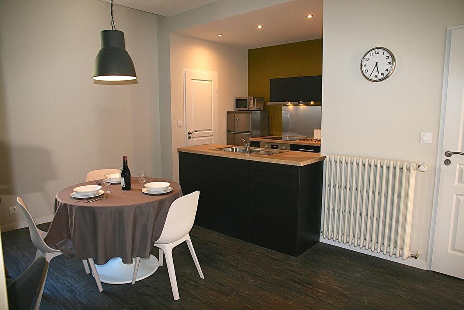 Cet appartement au 1er étage est aménagé dans une maison de maître comprenant d'autres locations de vacances (appartements Lilly et Iris), en plein cœur du centre-ville, dans une ruelle au calme. Il se compose d'une pièce de vie avec cuisine toute équipée, d'un coin salon avec TV, d'une chambre avec 1 lit double (160*200), d'une seconde chambre avec 1 lit simple (90*200) et d'une salle d'eau avec douche et WC indépendant. Côté extérieur, une terrasse commune avec salon de jardin et barbecue vous permettra de profiter des beaux jours. Idéalement situé, vous pourrez accéder au centre-ville en quelques minutes à pied où vous trouverez tous les commerces, un casino, le centre thermal Therma Salina ainsi que la Grande Saline (classée au patrimoine mondial de l'UNESCO). De nombreux sites touristiques sont également à découvrir lors de votre séjour : le Mont Poupet qui domine la ville, Ornans, ville natale du peintre Courbet, le parc Vauban aventures Note : possibilité de se garer dans la ruelle où sur une place à 40 mètres - tarif spécial curiste : 880 euros pour 3 semaines de location. Parking à 50m.