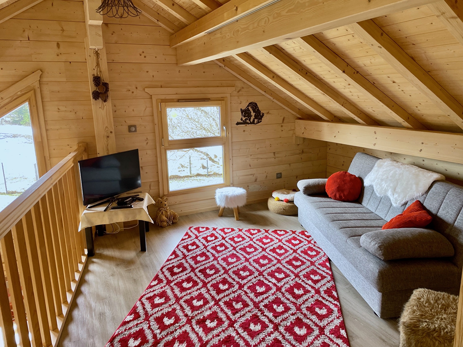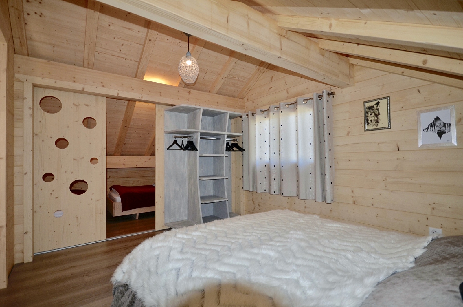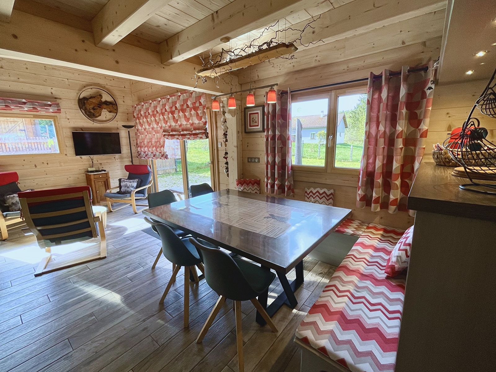 Au cœur du village de la Pesse, location d’un chalet neuf, tout en bois, 6 couchages et tout confort.
