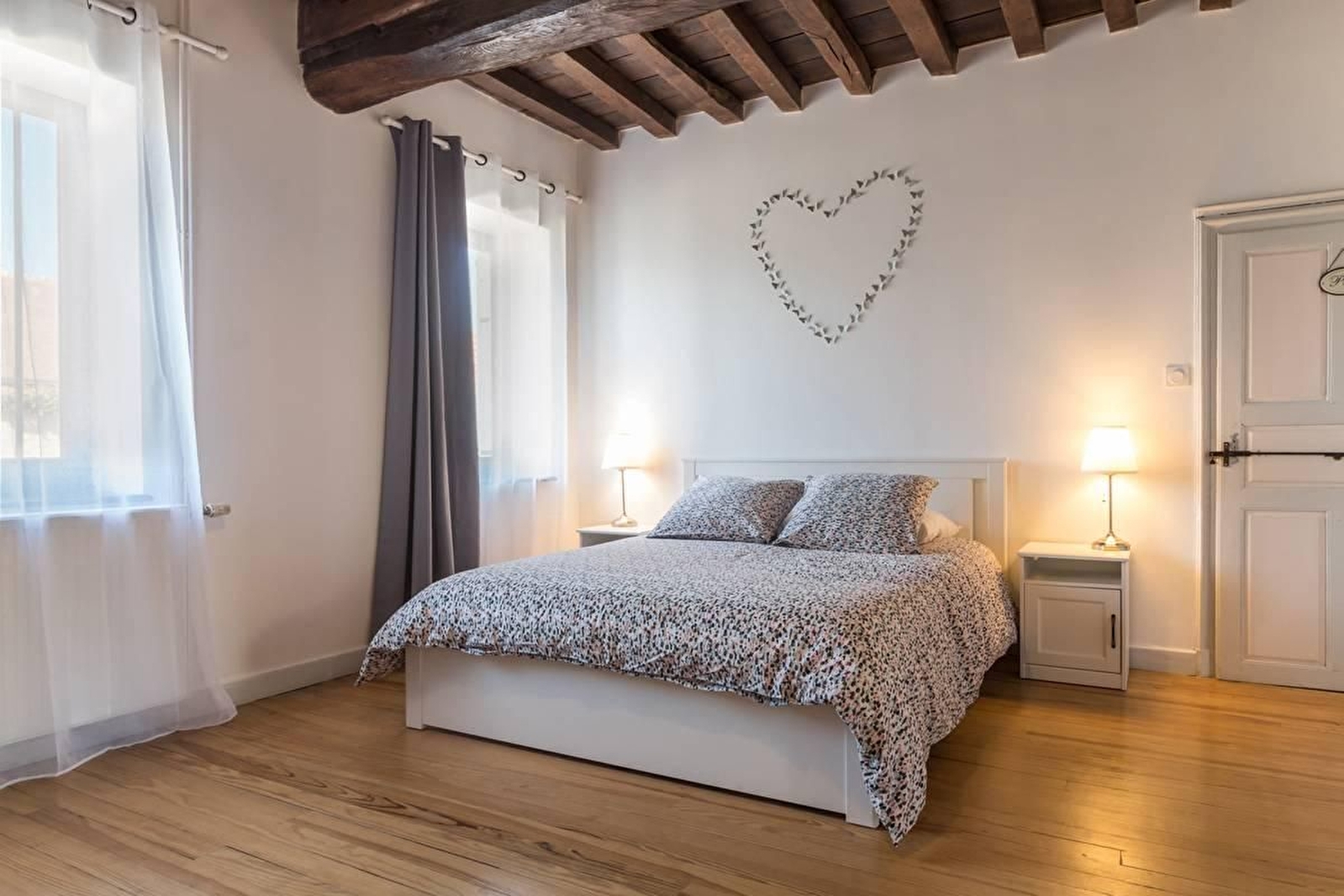 Idéalement située entre Dijon, Dole et Beaune, belle maison de 1750 de plain pied entièrement rénovée tout en conservant le charme de l'ancien : plafonds à la Française, cheminées en marbre, parquets, boiseries et huisseries d'époque. Salle à manger avec cuisine intégrée et cheminée insert, grand salon, 2 vastes chambres de 21 m² avec chacune 1 lit 160 et possibilité d'ajouter un lit d'appoint (en supplément), salle de bains complète avec baignoire, douche et WC. Le gîte est mitoyen à la maison des propriétaires, sur un beau terrain clos de 3800 m², avec cour et jardin communs. Abri vélos. Piscine commune et chauffée de Juin à Septembre, de 4x9m sécurisée par un portillon fermé à clé et un volet.