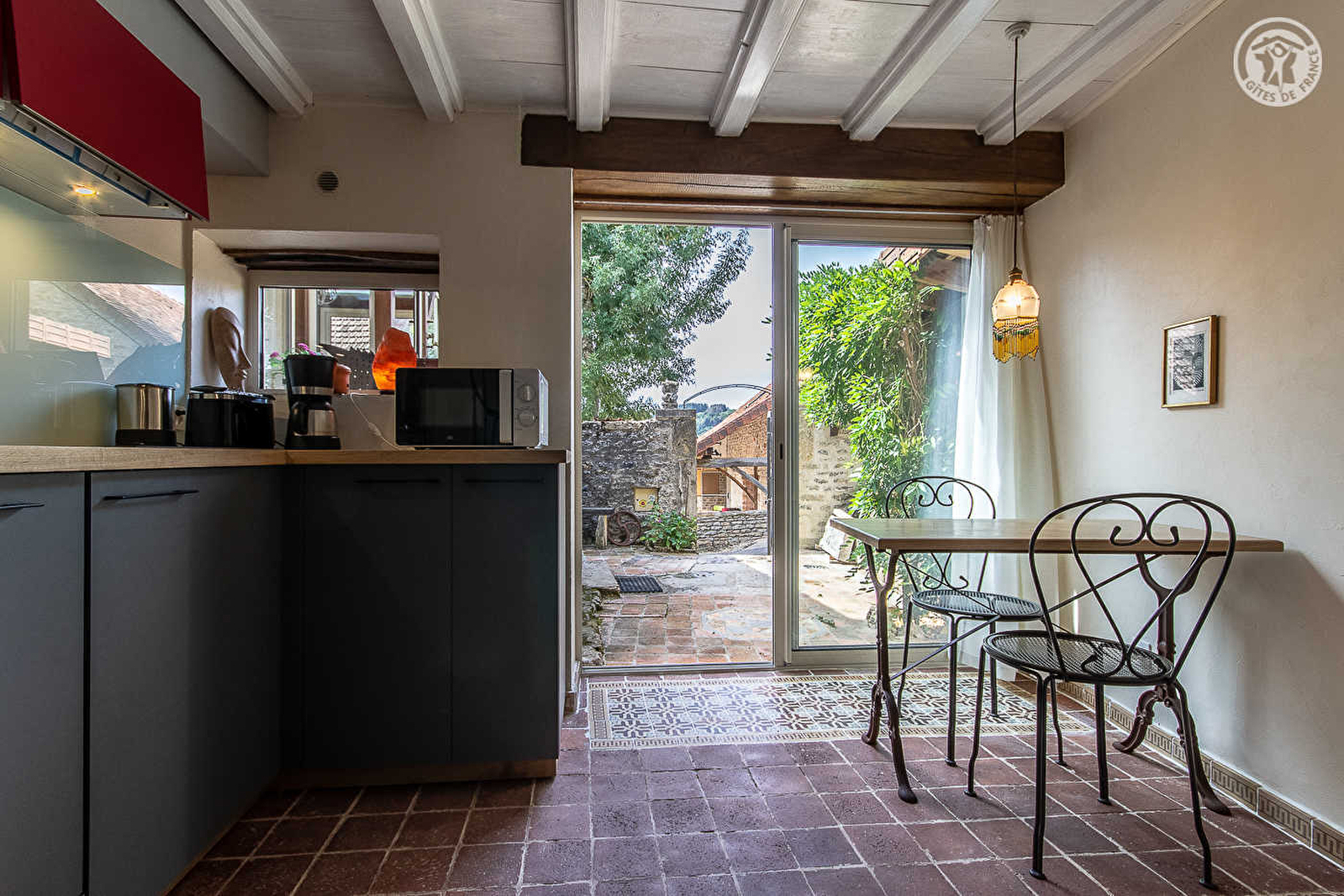 Ancienne dépendance agricole du XVIIIème siècle réhabilitée avec soins dans l'esprit d'une atypique maisonnette "tout confort" sise au sein d'un paisible hameau rural niché à flanc de coteau ouest bien exposé dominant la bucolique vallée du Guye, jouxtant les majestueuses ruines d'un château médiéval du XIIème siècle à deux pas du centre de Sigy-le-Chatel, pittoresque petit village pétri d'histoire (maisons à pigeonniers & galeries, église romane du XII, moulin du XIVe…). Au creux d'un magnifique cadre champêtre vallonné de bocage, prairies, rivières & forêts blotti au pied du site naturel du plateau de la Roche (belvédère unique dominant les vallées de la Grosne & de la Guye offrant une vue panoramique littéralement exceptionnelle s'étendant de la plaine de la Saône jusqu'aux Alpes). Site préservé de toute beauté en pleine campagne clunisoise. Gîte de bon confort. Chaleureux cachet campagnard contemporain marié à une restauration patrimoniale soignée (tomettes, mur en pierres… d'origine). Beaucoup de charme. Ambiance cosy. Large cour-terrasse close complétée par un agréable jardin clos totalement insolite, aménagé & fleuri dans un esprit "nature", doté d'une vaste terrasse abritée, d'une terrasse de détente panoramique, d'un terrain de pétanque & de nombreux équipements ludiques sécurisés (tyrolienne, cabane enfants avec mini mur d'escalade et toboggan, cages de foot, petit bassin abritant grouilles, tritons…). Belle vue dégagée sur la campagne environnante. Superbes paysages & panorama.