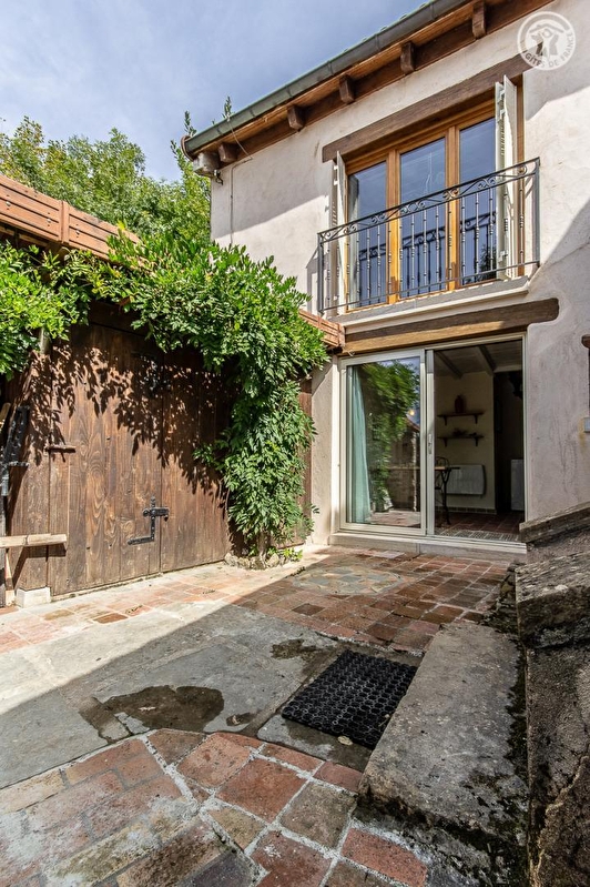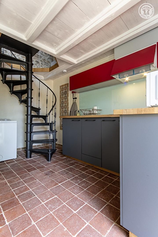 Composition : Maison mitoyenne à la résidence secondaire des propriétaires (rarement occupée). Wifi (fibre). Chauffage électrique. Gîte en triplex. Rdc : séjour-cuisine, sde (douche sauna/wc). 1er étage : salon-mezzanine (2 lits 1 p. gigognes 90x200cm). 2ème étage : chambre en mezzanine (lit 2 p. 160x200cm + lit 1 p. 80x200cm). Cour-terrasse close + terrasse abritée + jardin clos (en commun si propriétaire présent). Parking public aisé sur place. Commerces et services 6 km.