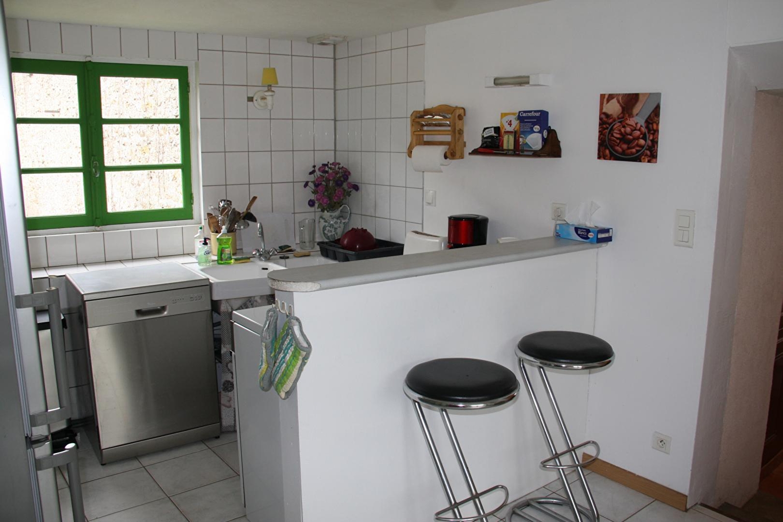 Composition : Maison individuelle. Wifi. Chauffage central fioul. Rdc : cuisine, séjour-salon, WC indépendant. 1er étage : 2 chambres en enfilade (lit 2 p. 160x200cm / 3 lits 1 p. 90x190cm) avec salle d'eau privative (douche/WC). 2ème étage : 2 chambres (2 lits 1 p. 90x190cm / 2 lits 1 p. 90x190cm), salle de bain (baignoire), WC indépendant. Terrasse sur cour + jardin (2000m²) + local vélos + parking privatifs. Supermarché & Commerces à 6 km.