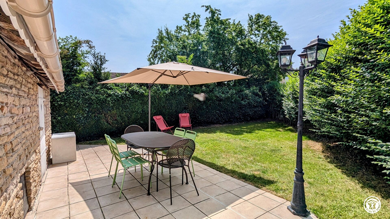 A l'extérieur: une grande cour à l'avant de la maison avec salon de jardin (possibilité de stationner 2 véhicules), 1 terrasse sur le côté de la maison plein sud avec salon de jardin, barbecue et parasol. Jardin d'agrément sans vis à vis. Environnement très calme proche de l'église classée et de la rivière .A disposition sur demande gratuitement : Lit parapluie, chaise haute, matelas à langer, pot et baignoire bébé.