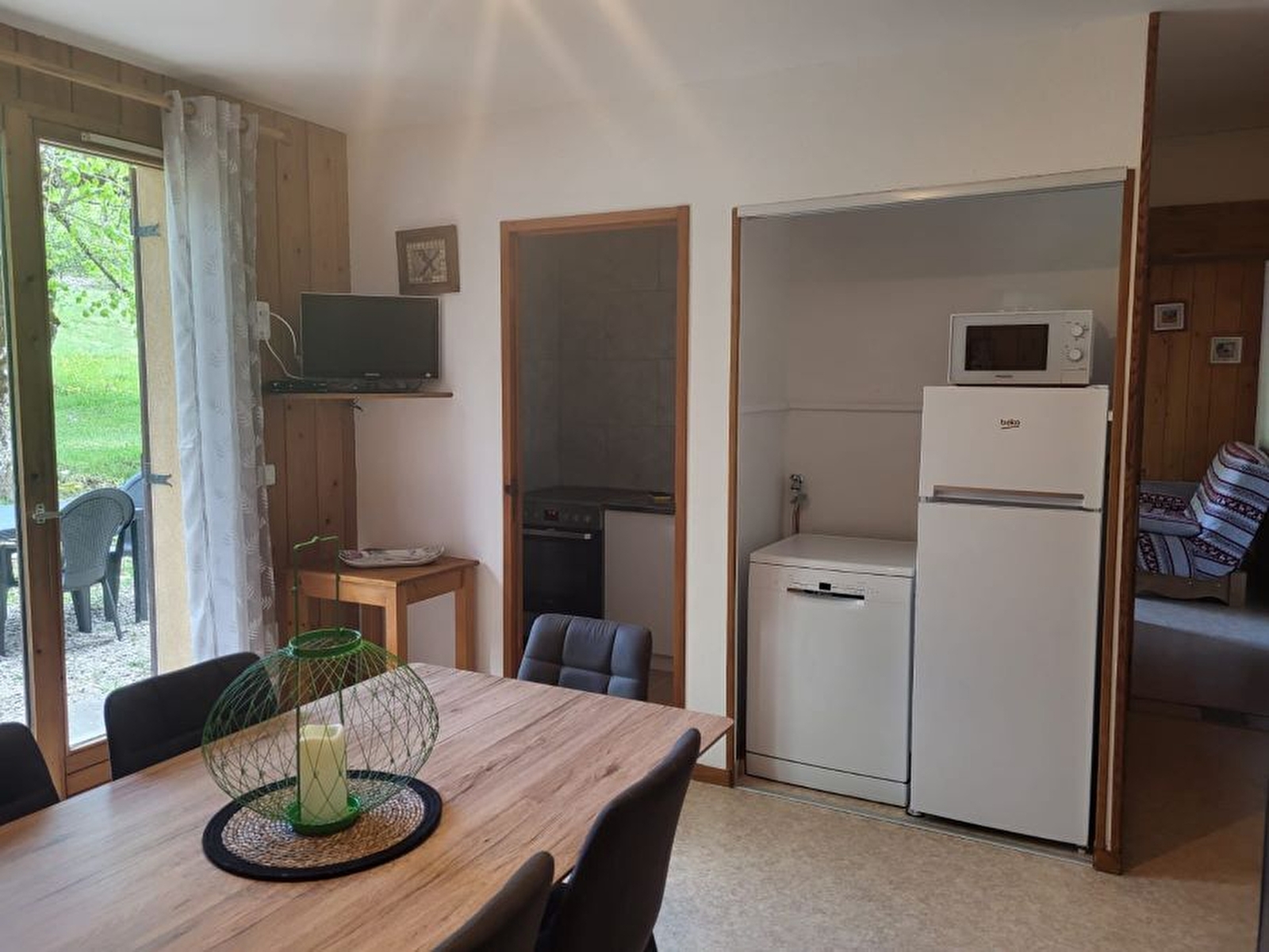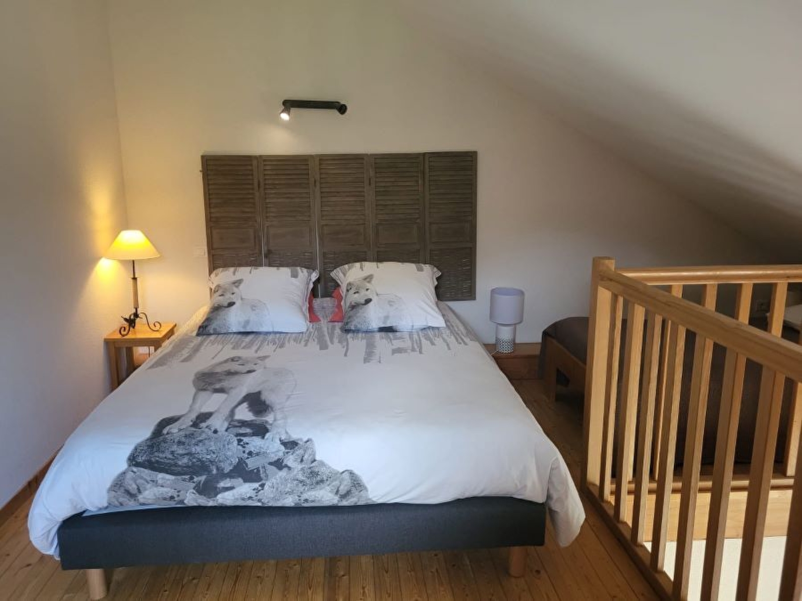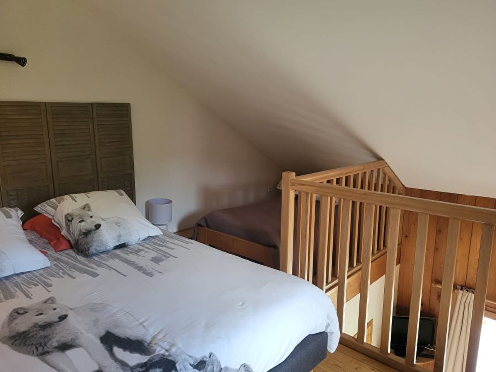 Au cœur de la Région des Lacs et à deux pas des Cascades du Hérisson, venez séjourner dans ce gîte idéal pour les amoureux de la randonnée. Cuisine indépendante équipée, petit salon avec canapé et TV, coin nuit en mezzanine avec 1 lit double en 160 et 1 lit simple, salle d'eau avec cabine de douche et WC indépendants. Côté extérieur, vous pourrez profiter d'une terrasse avec salon de jardin, transats et barbecue. Pour votre plus grand confort les lits seront faits à votre arrivée et les serviettes de toilettes sont fournies. Idéalement situé pour découvrir les cascades du Hérisson, le lac de Chalain, vous pourrez également rejoindre le Haut-Jura en une vingtaine de minutes. Location possible à partir de 3 nuits, consulter la propriétaire. Parking privé sur place et volets dans les chambres.