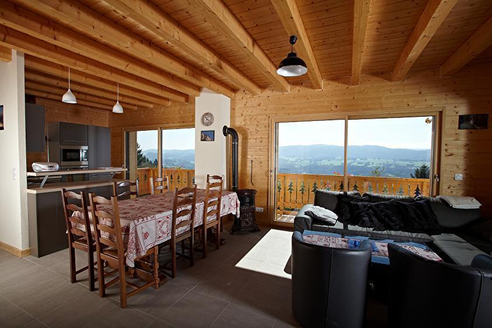 Très beau chalet indépendant avec vue panoramique sur le village de Foncine et sur les Monts Jurassien. Au rez de chaussée : grand garage avec buanderie. Au 1er étage : cuisine intégrée toute équipée ouverte sur salle à manger, salon (poêle à bois). Accès sur le balcon de 60 m² avec une vue magnifique et dégagée. Une salle de détente avec douche et jacuzzi 4 pers. (à dispo : radio ). Ch1 : 1 lit 2 pl (160), WC séparé. Au 2ème étage : Ch2 : 1 lit 2 pl (160), Ch3 : 3 lits 1 pl (90x200), Ch4 : 2 lits 1 pl (90x190). Deux lits bébé disponibles. TV dans chaque chambre. Salle de bain avec douche, WC séparé. Le balcon dispose d'un salon de jardin avec barbecue ainsi qu'un jacuzzi extérieur. Parking privatif sur place.