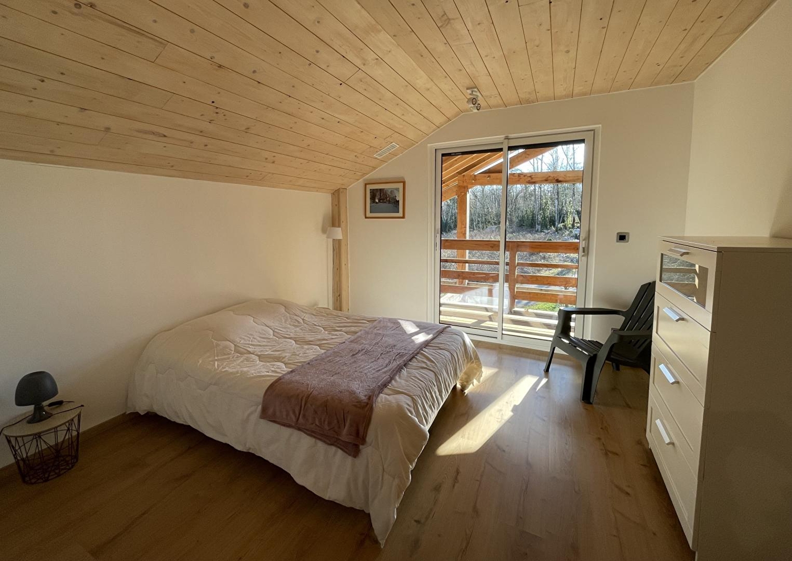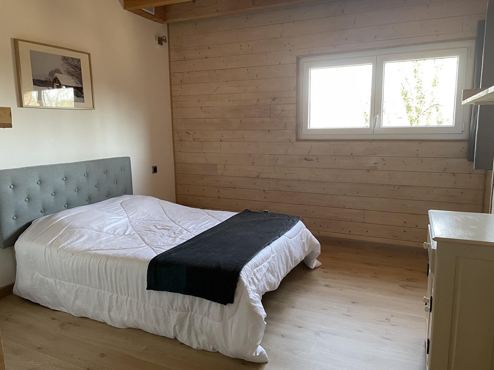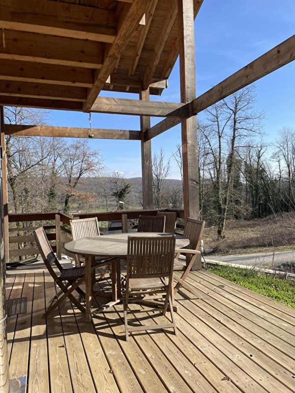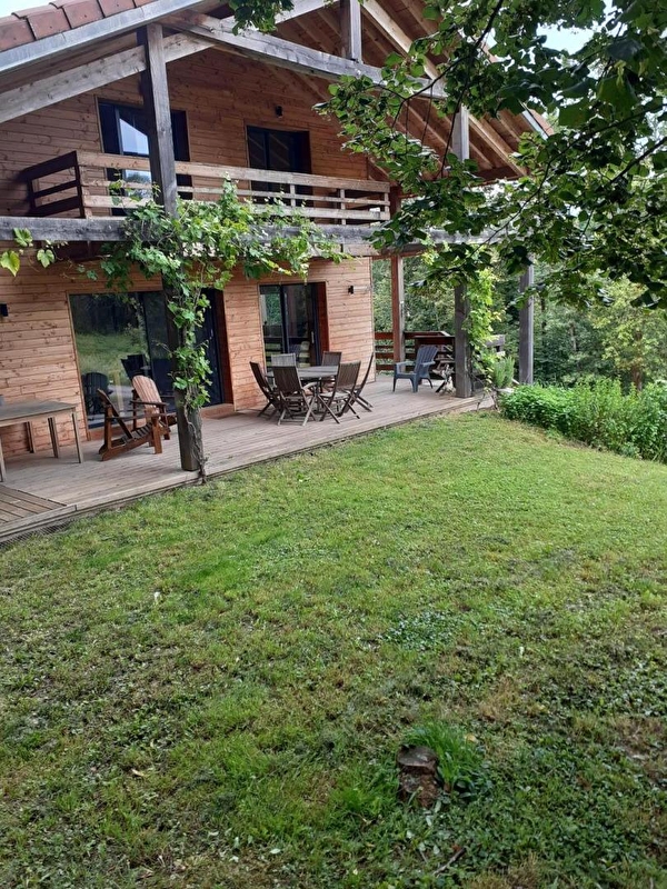 Le Chalet "New Hampshire" est le rêve familial d'Anne-Louise : un lieu pour se retrouver et créer de nouveaux souvenirs, et un lieu à partager. Originaire du New Hampshire aux USA, la propriétaire est tombée amoureuse de la région des lacs et petites montagnes qui lui rappellent chez elle. Dans ce chalet moderne et eco-friendly se compose d'une pièce de vie avec cuisine toute équipée, salon avec TV et poêle à bois, d'une chambre avec 1 lit double (140*190), d'une salle d'eau avec baignoire et douche à l'italienne et d'un WC indépendant. A l'étage une mezzanine avec un petit salon agrémenté d'une TV, de livres et de jeux de société, un coin bureau idéal pour le télétravail, 2 chambres avec chacune un lit double (140*190) et 1 chambre avec 1 lit double (140*190) et 2 lits superposés, une salle d'eau avec douche et un WC indépendant. Côté extérieur, vous pourrez profiter d'une belle terrasse agrémentée d'un salon de jardin et d'un barbecue.Un garage vous permettra de mettre à l'abri vos vélos ou motos Idéalement situé pour les amoureux de randonnées cyclo, pédestre et équestre, vous pourrez également partir à la découverte des lacs et cascades et vous rendre à Bourg-en-Bresse en 30 minutes pour visiter le célèbre monastère royal de Brou. Vous pouvez trouver aussi un terrain pétanque sur place (communale mais juste derrière le chalet sur le chemin de terre). Tennis à 8km (Aromas). Il y a aussi des randonnées sur place, avec chemins balisés. A noter: le sous-sol est loué à l'année.