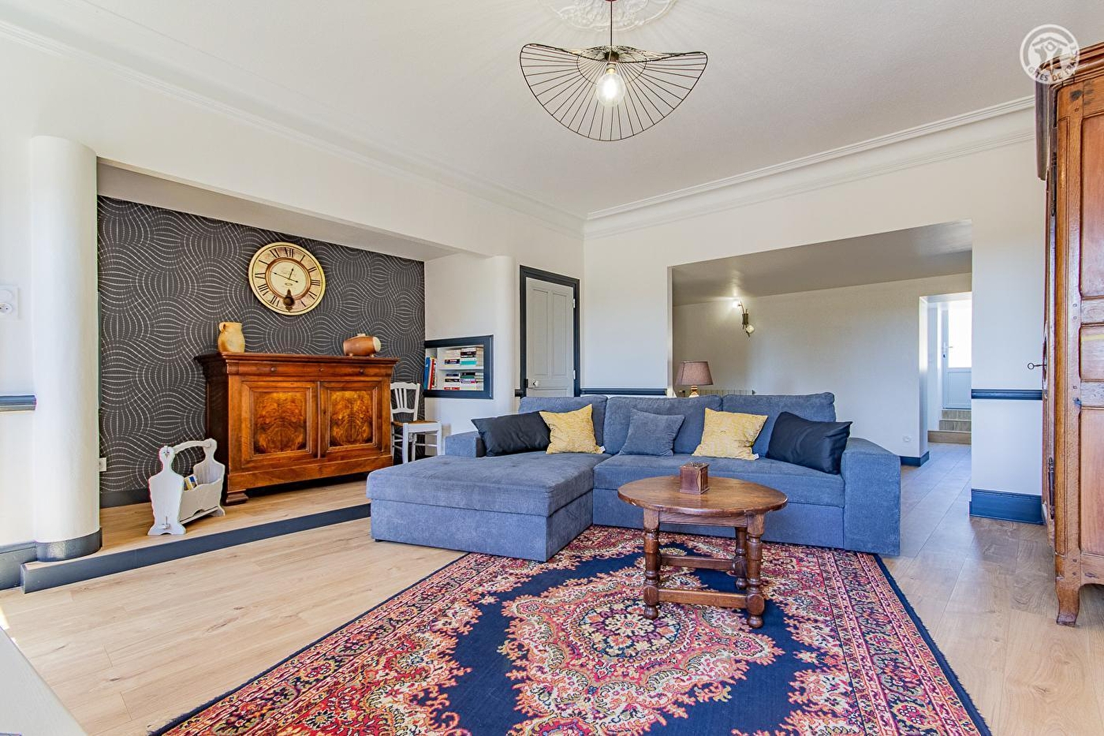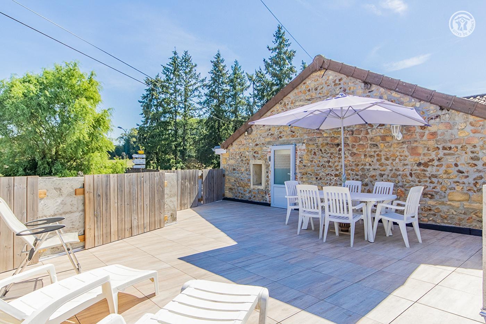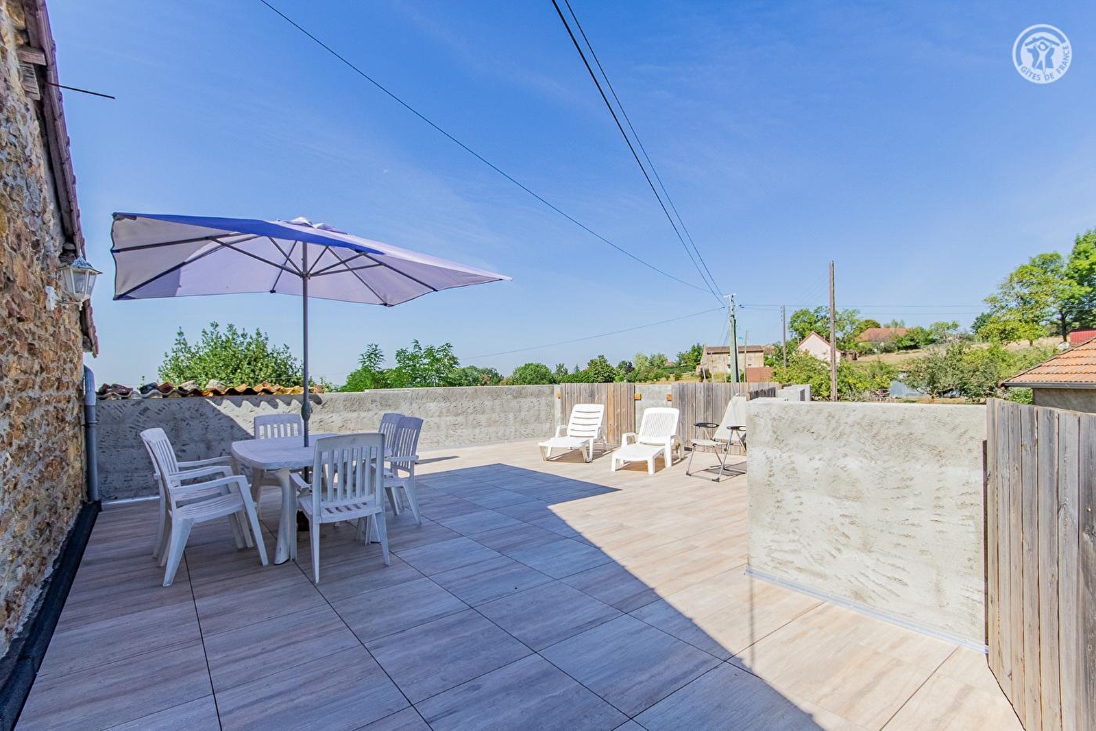 Christine & Marc (passionné de vélo qui saura vous guider), vous ouvrent les portes d'une authentique "demeure de bourg" de caractère du XVIIe soigneusement restaurée, bordant la rue principale traversant le village, sise face à un insolite petit château de "carte postale" à deux pas du centre bourg. Blotti au sommet d'une colline culminant à 400m, capitale historique du Brionnais doté du prestigieux label "Plus beaux villages de France " & "site clunisien" pétri d'histoire (ancien fief de Saint-Hugues abbé ayant œuvré à la "grandeur" de l'abbaye de Cluny), ce pittoresque village médiéval dispose d'un patrimoine exceptionnel (vestiges du château du Xe & son imposant "donjon carré", église "collégiale" & chapelle romanes du XIIe, majestueux prieuré du XIXe, hôtel de ville du XVIIIe, demeures historiques…) et profite d'un écrin champêtre vallonné riche de sublimes paysages, lové au creux du somptueux bocage local cerclé de vastes forêts sauvages préservées. Spacieux gîte de très bon confort. Chaleureux cachet mixant traditions & modernité, entre ambiance campagnarde "bourgeoise" & esprit contemporain, conjugué à l'âme dépaysante d'une ancienne demeure. Beaucoup de charme & caractère. Cosy & très douillet. Vaste balcon-terrasse exposé & ombragé de 50m², niché à l'arrière de la maison "côté prairies", offrant une belle vue dégagée sur la campagne environnante et le donjon du château en "toile de fond".