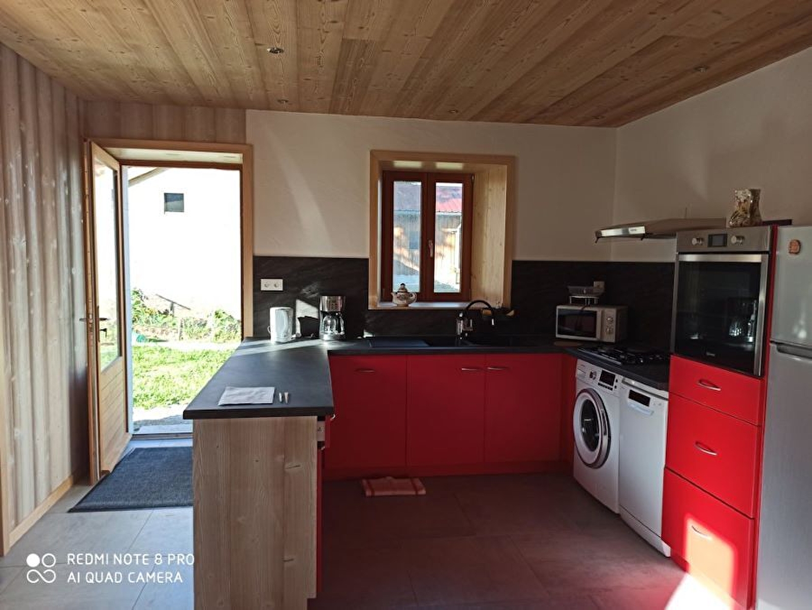 Ce gîte aménagé dans une ancienne ferme et mitoyen à la maison du propriétaire se compose au rez-de-chaussée, d'une cuisine toute équipée, d'un coin salon avec banquette-lit BZ et d'un WC indépendant. A l'étage : mezzanine avec canapé convertible 2 places, TV + lecteur DVD, coin lecture, 1 chambre avec 1 lit 140 et 1 chambre avec 1 lit 140 + 1 lit 90, une salle d'eau avec douche à l'italienne et WC. Côté extérieur, vous pourrez profiter d'une terrasse de 15 m² accessible directement depuis la cuisine, ouverte sur la nature avec salon de jardin, un barbecue et une plancha. Un local fermé est également à votre disposition pour entreposer vos skis, vélos... Idéalement situé, à 2 kms du centre du village où vous trouverez tous les commerces (restaurant, supermarché, fromagerie, bureau de tabac...). Les sentiers VTT, ski de fond et raquettes partent depuis le gîte et un fil neige pour l'apprentissage du ski de descente se trouve à 2 kms. Le parc polaire de Chaux Neuve, les gorges de la Saine et de la Langouette se trouvent à une dizaine de minutes. Caution pour animal: 300 €