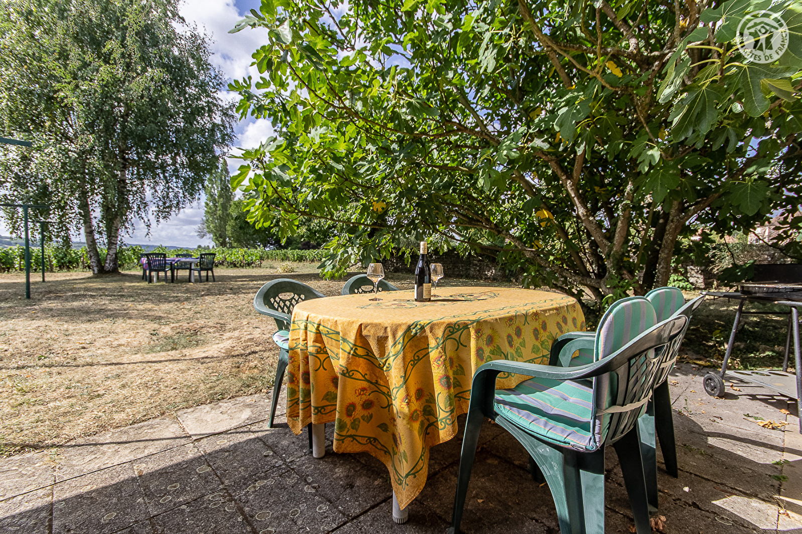Issus d'une historique famille de vignerons installée sur place depuis 1830, Fernand & Catherine vous accueillent au sein d'une authentique longère bourguignonne de caractère de 1798, intégralement restaurée dans les règles de l'art & chargée d'histoire (jadis "maison de maitre" d'un notable local), sise au calme sur leur domaine viticole familial exploité en agriculture biologique (AOC Maranges Côtes de Beaune / dégustations & visites possible sous les anciennes caves voûtées multi-centenaires de la bâtisse). Au sein d'un hameau résidentiel dominant le pittoresque village viticole de Cheilly-les-Maranges, blotti le long du Canal du Centre aux confins des rivières Cosanne & Dheune. Magnifique écrin paysagé alentour (protégé en "Zone Natura 2000" & ZNIEFF pour ses richesses faunistiques & floristiques), lové au creux de la vallée des Maranges & sa bucolique campagne vallonnée conjuguant coteaux de vignobles, prairies boisées & belles forêts sauvages. Site de toute beauté. Superbe vue dégagée sur les vignobles & la campagne environnante. Spacieux gîte de bon confort. Chaleureux cachet campagnard marié à une belle restauration patrimoniale (manteau de cheminée, tommettes, poutres… d'origine). Beaucoup de charme & caractère. Ambiance douce & dépaysante d'une authentique demeure de campagne. Large terrasse exposée & ombragée (en partie abritée) ouvrant sur un agréable grand jardin soigneusement engazonné & arboré, bordés d'historiques murs en pierre sèches, niché à l'abri des regards en lisière du vignoble.