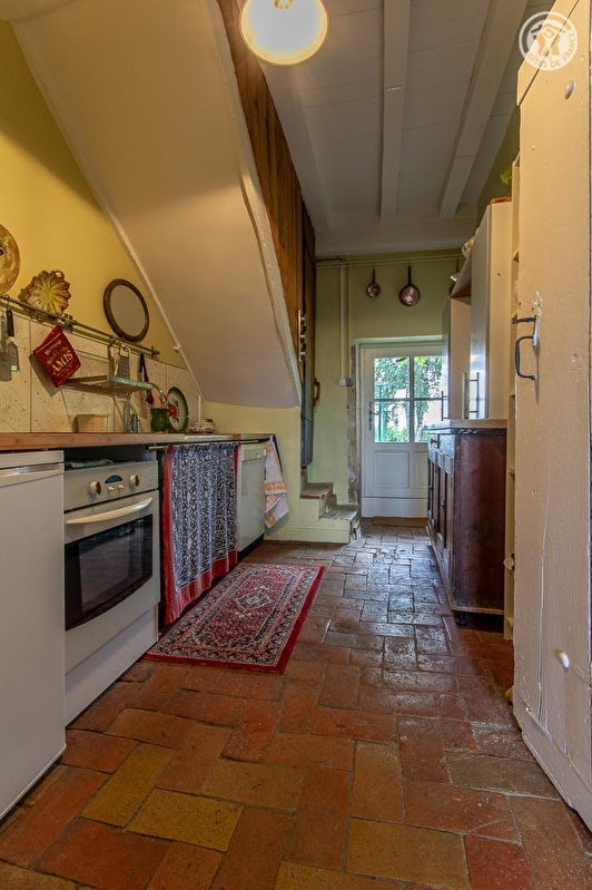 Composition : Gîte de plain-pied mitoyen avec une cuverie & l'habitation des propriétaires (indépendance totale sans vis-à-vis). Wifi (fibre). Chauffage central gaz + poêle à bois. Lave-linge dans local attenant (accès par l'extérieur). Rdc : cuisine, séjour-salon, 1 chambre (lit 2 p. en 160x200cm), salle d'eau (douche), wc indépendant. Terrasse + jardin + parking ombragé privatifs. Local vélos. Petits commerces & supérette 3.5 km. Commodités & supermarchés 8 km.
