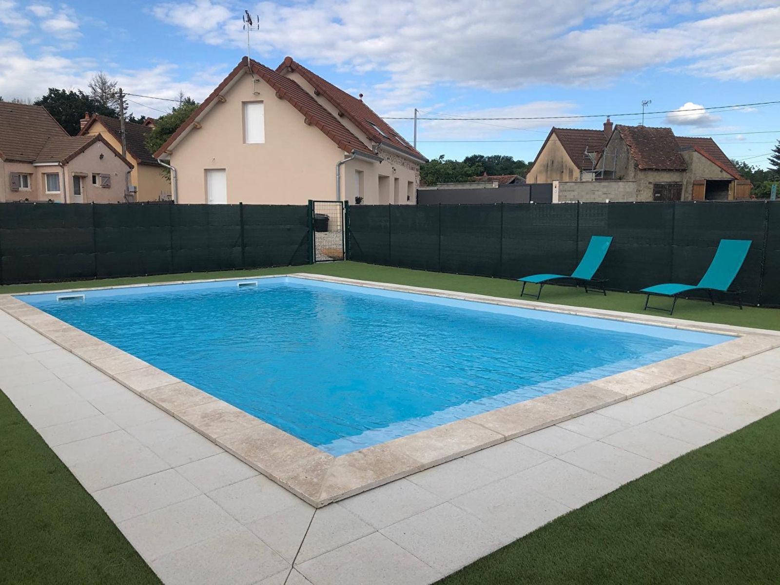 Composition : Maison individuelle en duplex jouxtant 2 autres gîtes sur une propriété familiale (indépendance totale sans vis-à-vis). Wifi. Chauffage électrique. Rdc : séjour-cuisine-salon, 1 chambre (lit 2 p. 140x190cm), salle d'eau PMR (douche), WC indépendant accessible PMR. 1er étage : 3 chambres (2 lits 1 p. 90x190cm / lit 2 p. 140x190cm / 2 lits 1 p. 90x190cm) dont une « parentale » avec salle d'eau privative (douche/wc indépendant). Terrasse (40m²) + cour close + local vélos + parking privés. Piscine privative (5x9m). Commerces & services 5 km. Gare 5 km. Gare Creusot TGV 62 km.