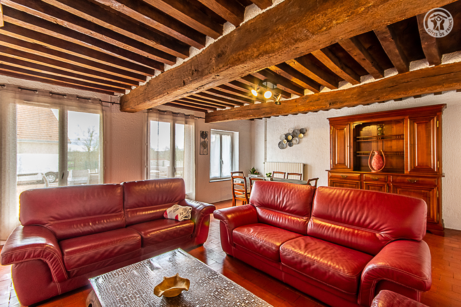 Authentique fermette de pays du 19ème siècle, intégralement restaurée & relookée, nichée au cœur d'un paisible petit hameau rural chargé d'histoire (ancienne bourgade viticole cerclée de 230 ha de vignes au début du 20ème s.) blotti au pied d'une colline boisée en lisière de prairies et bocages, sur les rives de la Loire le dernier « fleuve sauvage » d'Europe. Agréable cadre champêtre au creux d'un site naturel préservé classé en « Zone Natura 2000 » pour la qualité de son exceptionnel biotope végétal & animal (poissons, mammifères, oiseaux, insectes, amphibiens…), axe de migration, reproduction et nidification pour de nombreuses espèces dont certaines très rares (Saumon atlantique, grande Alose, Lamproie marine ou Anguille ; Échassiers, Martin pêcheur, Hirondelle de rivage, Guêpier d'Europe…). Petit paradis pour tout amoureux de la nature. Spacieux gîte de bon confort. Chaleureux cachet campagnard alliant traditions & modernité. Ravissante ambiance dépaysante d'une ancienne demeure de pays conservant de nombreuses traces du passé (poutres, plafonds à la française, tomettes d'origine). Large terrasse exposée et ombragée ouverte sur une vaste cour close & fleurie de 400m² (parfait terrain de pétanque naturel !) abritant un agréable petit jardinet, un ludique « mini jardin potager » en cueillette libre, un spa extérieur et une belle piscine hors-sol (4x6.5m).