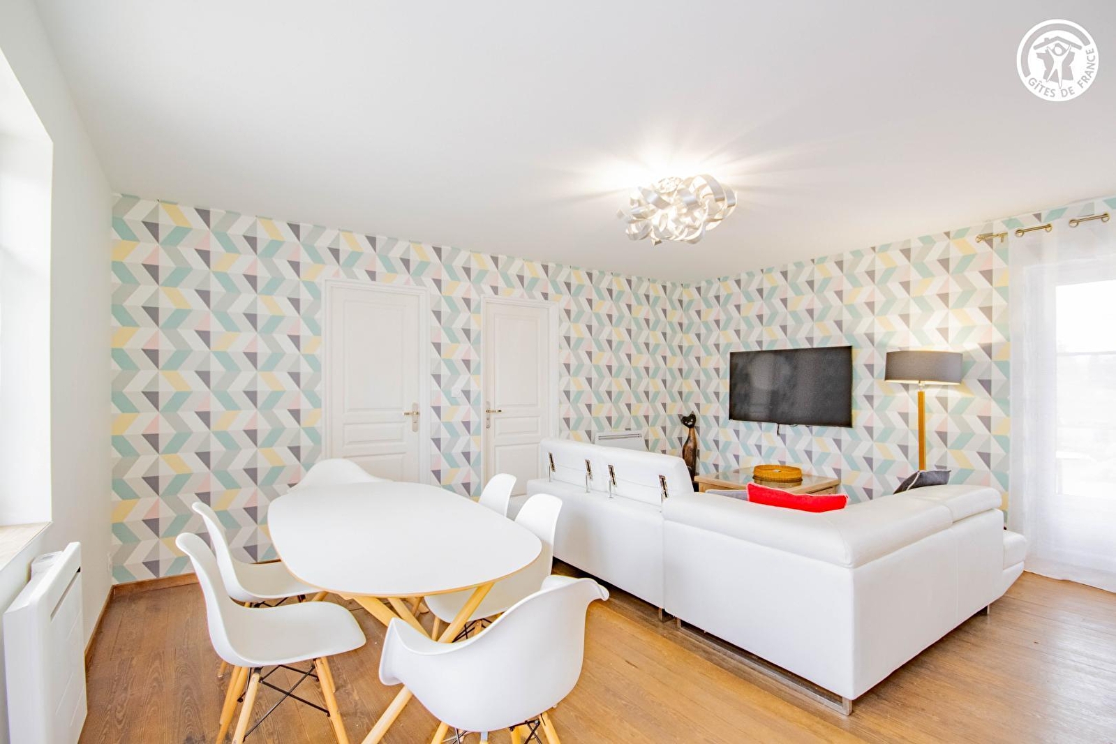 Composition : Maison comprenant 4 gîtes. Wifi (fibre). Chauffage électrique. Lave-linge en commun (espace buanderie au 1er étage). Gîte au rdc : cuisine, séjour-salon, 3 chambres (lit 2 p. 140x190cm / lit électrique 2 p. 160x200cm / lit 2 p. 140x190cm) dont 1 PMR avec TV & sde privée (douche/Wc), salle d'eau (douche/Wc). Terrasse (sur mini-cour commune) + parking privatifs. Jardin (ping-pong/balançoire-toboggan/filet de badminton-volley) + piscine (2x5m / pool-house) + cave en commun. Commerces dont supermarchés 6 km.