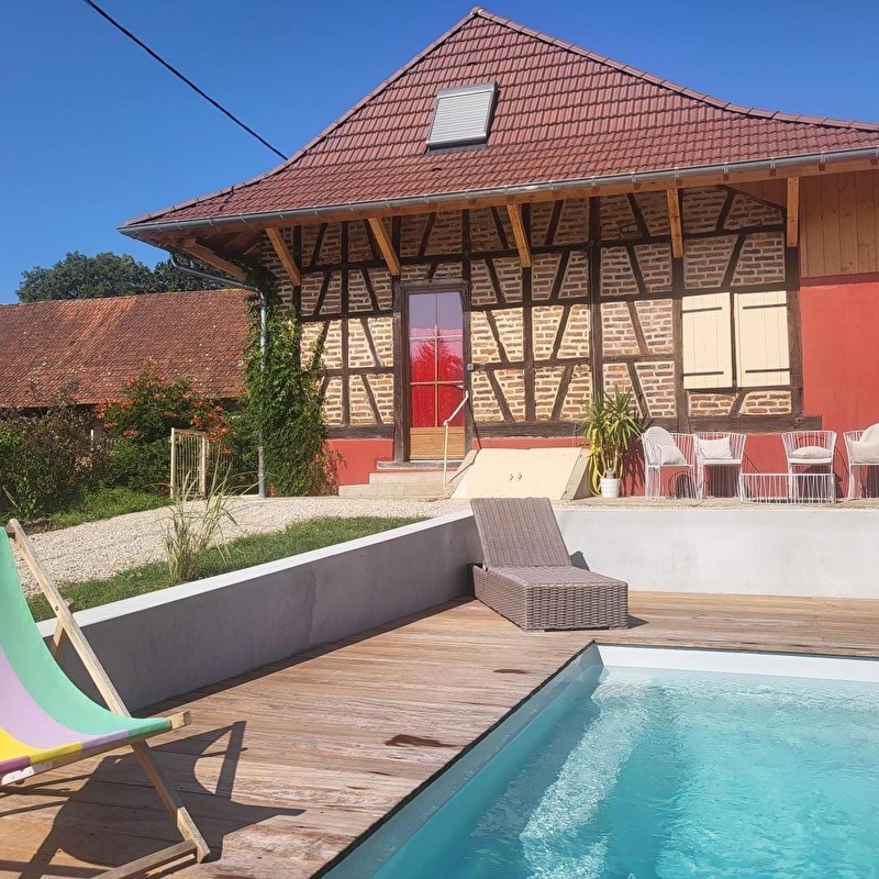 Ravissante demeure bressane de caractère du XIXe d'architecture traditionnelle en briques, soigneusement restaurée, sise au calme en plein cœur d'un paisible & charmant petit village typique, en bordure d'une prairie arborée ouvrant sur l'étang de pêche communal directement accessible (carpes & brochets entre autres…). Niché en pleine campagne bressane, au creux de la verdoyante basse vallée du Doubs, non loin des premiers contreforts montagneux boisés du massif du Jura, La Chapelle-Saint-Sauveur profite d'une apaisante douce campagne préservée (en partie protégée en ZNIEFF), conjuguant "pleine nature" & agriculture, blotti au creux d'une plaine bocagère parsemée de bucoliques étangs & belles forêts sauvages et dispose d'une base de loisirs dotée d'un très réputé plan d'eau "naturel" aménagé en "baignade biologique". Gîte de très bon confort. Chaleureux cachet campagnard aux accents contemporains mixé à quelques riches traces du bâti d'origine (élégantes tommettes à "damiers" côté cuisine). Ambiance douillette & dépaysante. Large terrasse privative en partie abritée offrant une belle vue sur la campagne environnante. Espace piscine (2x5m) en commun agrémenté d'un vaste pool-house (avec cuisine d'été, WC & mini salle de sport équipée). Agréable jardin naturel comprenant table de ping-pong, balançoire-toboggan & filet de badminton-volley. En bonus : accès à une ancienne cave aménagée en espace détente pour se mettre au frais l'été.