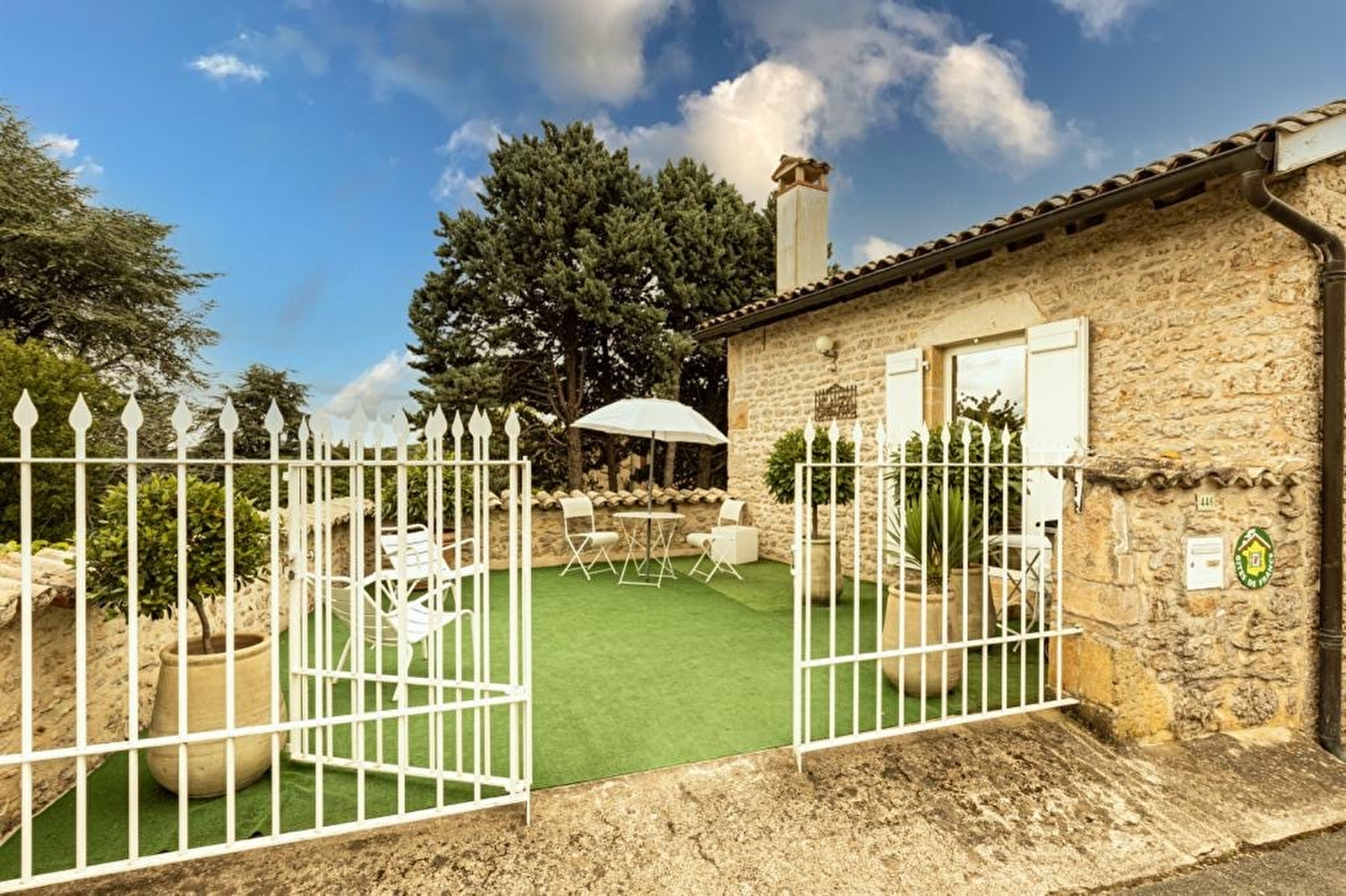 Propriétaire d'un petit domaine viticole familial exploité depuis des générations, niché à deux pas, Annie vous ouvre les portes d'une authentique dépendance de caractère d'une maison de vigneron du 17ème siècle chargée d'histoire (liée jadis à un ancien domaine viticole dont subsiste l'élégante maison de maître et son parc voisinant le gîte, d'où son nom), soigneusement revisitée en confortable villégiature, blottie en lisière immédiat de vignobles à l'entrée du paisible bourg viticole de Fuissé, fleuron du célèbre cru "Pouilly-Fuissé". Lové au creux d'un bucolique vallon de vignobles s'étalant à perte de vue sous les crêtes boisées d'un massif forestier en partie protégé en zone "Natura 2000", ce pittoresque village préservé pétri de charme, aux belles demeures typiques parfaitement restaurées & ravissantes petites ruelles, jouit d'un cadre paysagé vallonné littéralement grandiose, alternant pleine nature & viticulture. Somptueux panorama & paysages à découvrir aux alentours. Site enchanteur, totalement apaisant & reposant. Gîte de bon confort doté d'une architecture intérieure originale & insolite. Chaleureux cachet campagnard mixant une dépaysante ambiance méditerranéenne & à un esprit scandinave zen & très doux. Beaucoup de charme. Cosy & cocooning. Agréable terrasse panoramique close de 40m² - exposée & ombragée - offrant une belle vue dégagée sur le vignoble.