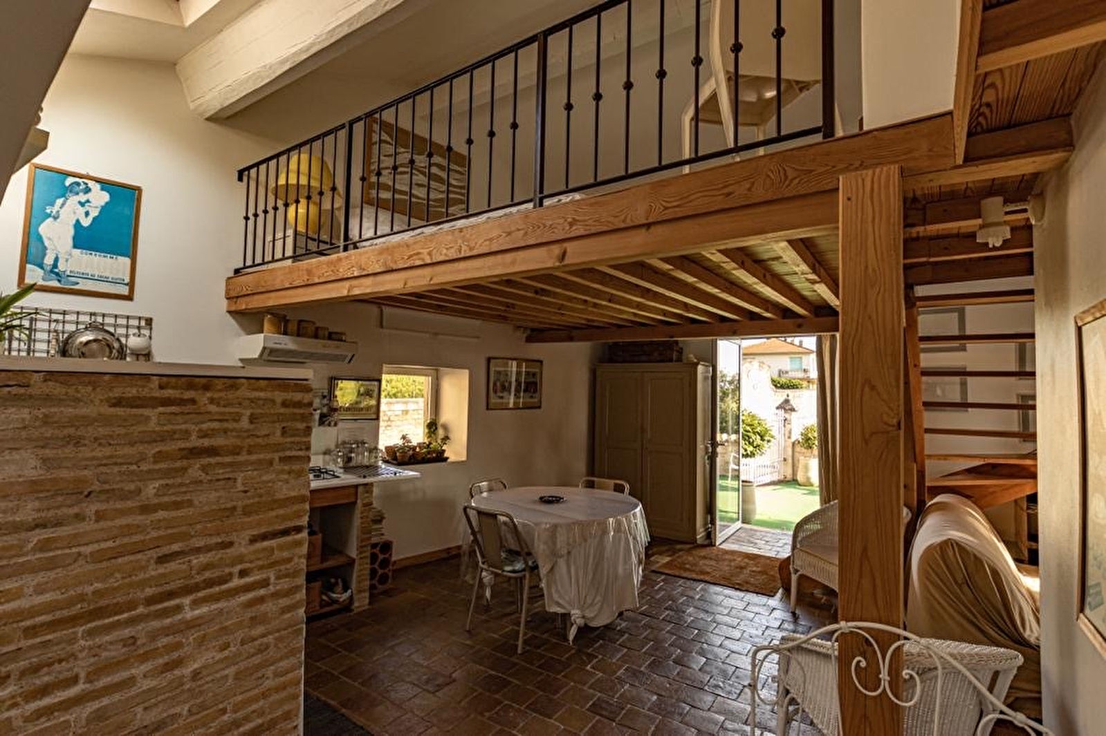 Composition : Gîte dans la maison de la propriétaire (totale indépendance sans vis-à-vis). Wifi (fibre). Chauffage central fioul. Lave-linge en commun dans buanderie partagée avec propriétaire (accès direct depuis le gîte). Rdc : séjour-cuisine-salon, chambre comprenant un couchage en mezzanine accessible par une échelle de meunier (lit 1 p. 90x190cm) & une salle d'eau privative (douche/Wc), salle d'eau (douche/Wc). 1er étage : espace chambre en vaste mezzanine "soupentée" (lit 2 p. 160x200cm / hauteur en partie inférieure à 1.80m). Terrasse close + parking privés. Toutes commodités 7 km. Golf 16 km.