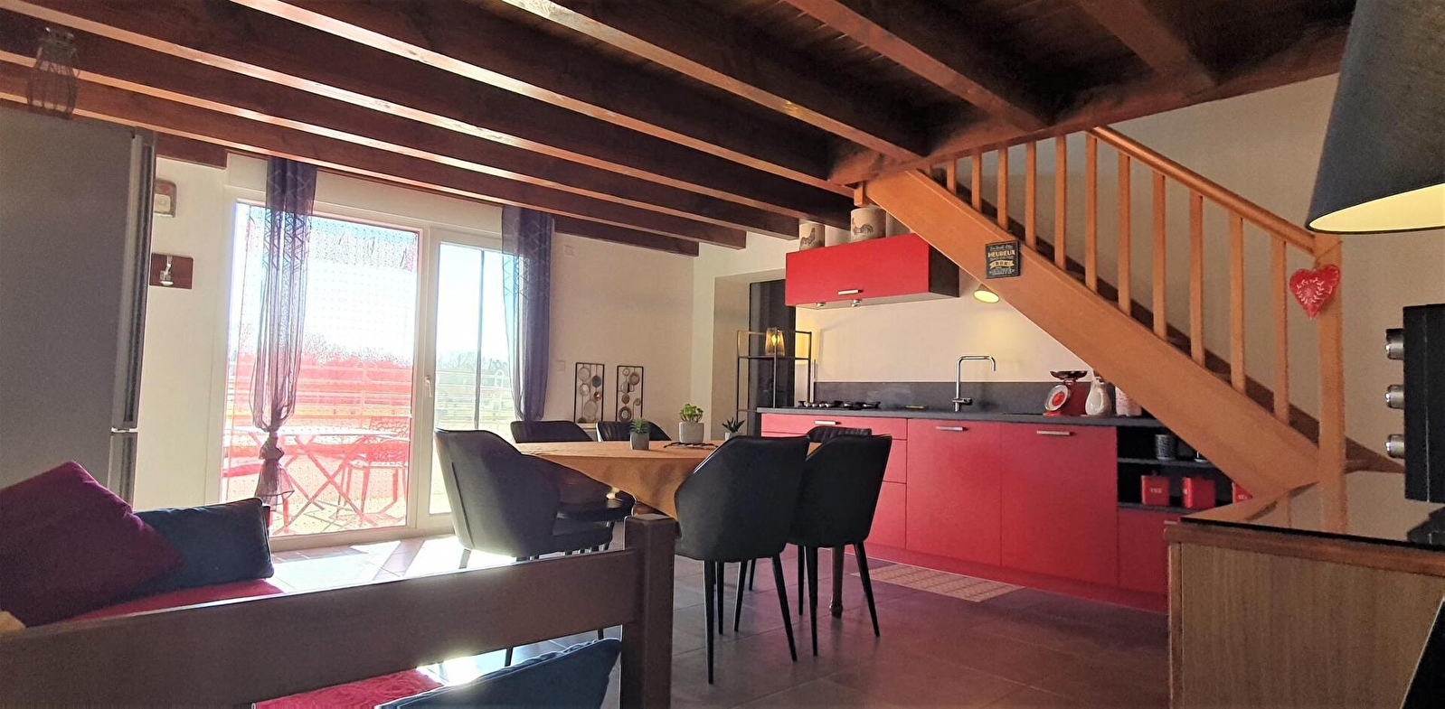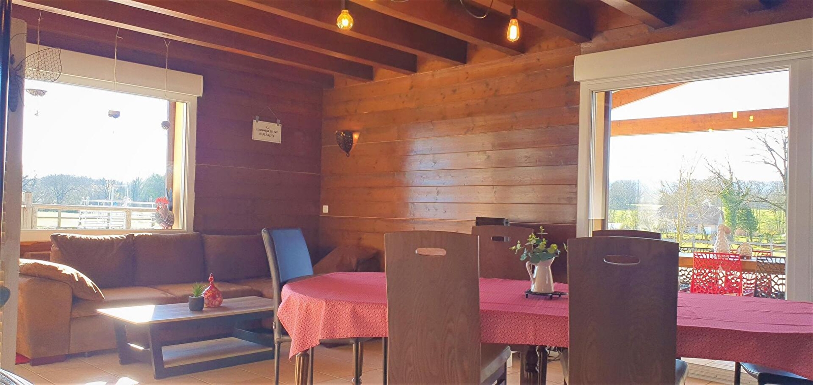 Cette ravissante « maison jumelée » qui regroupe deux gîtes (G2260 et G2261) vous accueille au cœur d'un domaine équestre de 9 hectares, dans un cadre naturel exceptionnel et où les animaux de la ferme (chevaux, poneys, chèvres, lamas...) évoluent en toute quiétude et pour le bonheur des amoureux de la nature. Aménagée avec goût et spacieuse (capacité d'accueil total d'environ 9 personnes), vous profiterez d'un réel confort grâce aux installations mises à votre disposition : cuisine équipée (l'une des deux pièces à vivre ainsi que la terrasse peuvent accueillir un groupe de 12 personnes pour les repas), douche à l'italienne, terrasse spacieuse.... (Informations supplémentaires et détaillées - cf annonces G2260 et G2261). Notre gîte se situe entre monts et vallées, ce qui vous offre le loisir découvrir des sites nommés “plus beaux villages de France” (Château-Chalon, Baume-les-Messieurs), des villages pittoresques ( Poligny ville du Comté ; Arbois – son musée et ses vins ; Salins-les-Bains – ses thermes et fortifications ; Dole – la Venise Jurassienne ; Arc-et-Senans et ses salines classées au Patrimoine Mondial de l'UNESCO...), la région des lacs (Chalain...) et des cascades (du Hérisson, des Tufs...) Possibilité de pratiquer diverses activités : randonnée à pieds, vélo, VTT... (départ depuis le gîte sur des pistes IGN), balades à poneys (activités proposées au sein de notre domaine dans le cadre de notre activité de "Ferme Équestre Élevage Juan"), piscine et thermes, lacs, visite de sites touristiques et culturels... ou tout simplement profiter de notre domaine pour vous reposer sur le temps d'un week-end ou durant quelques jours de vacances Animal de compagnie acceptés gratuitement et dans le respect de la charte d'accueil des animaux de Gîte de France (un par logement – accueil supplémentaire avec accord des propriétaires). Une caution de 300 € par animal vous sera demandée. Pour charge de véhicule électrique un surcout sera demandé (voir avec la propriétaire)