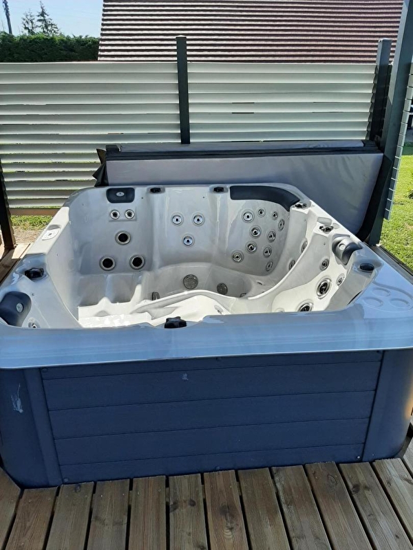 Dans un joli petit village du vignoble jurassien, à seulement quelques kilomètres de Poligny, capitale du Comté, venez séjourner dans cette maison neuve de plain-pied et profiter du calme environnant. Vaste pièce à vivre composée d'un coin salon avec canapé, télévision écran plat, chaine hifi bluetooth, poêle à pellets, et cuisine intégrée entièrement équipée. 1 chambre avec un lit de 160x200 et 2 autres chambres avec 2 lits de 90x200 (qui peuvent être accolés ou dissociés), 1 salle d'eau avec grande douche et 1 WC séparé. Terrasse avec SPA privatif ouvert toute l'année, salon de jardin et barbecue, offrant une magnifique vue sur le parc à Daims des propriétaires. Vaste terrain attenant clos. Pour votre plus grand confort, les linges de toilettes sont fournis et les lits sont faits à l'arrivée. Pour les amateurs de pêche, vous aurez accès à l'étang privé des propriétaires (prêt de matériel de pêche sur demande). Adresse à découvrir absolument, n'attendez plus pour réserver ! Le plus du gîte : climatisation réversible. 90 € de caution si les clients ne prennent pas le forfait ménage.