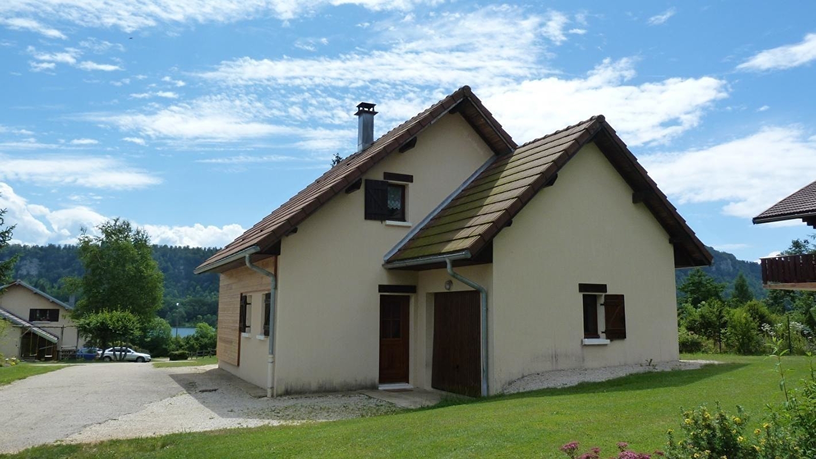 Maison indépendante située au coeur de la région des lacs et cascades, au pied et avec vue sur le lac d'Ilay. Intérieur bois avec véranda fermée avec coin cuisine, salon de jardin, barbecue. Garage pour rangement vélos et matériel divers (skis...),parking privatif. Grand jardin attenant avec aire de jeux. Au rez de chaussée: cuisine équipée ouverte sur salon-séjour, fourneau à vitre apparente, ch1: 1lit 2pl, salle de bain, WC indépendant. A l'étage: mezzanine avec coin salon, canapé convertible 1pers, ch2: 1lit 2pl, ch3: 1lit 1pl, WC indépendant, salle d'eau en option avec supplément de 30€/semaine. Chauffage bois et électrique (forfait bois variant de 25 à 45€ selon saison). Un seul chien accepté (pas de chat) avec une caution de 450 €