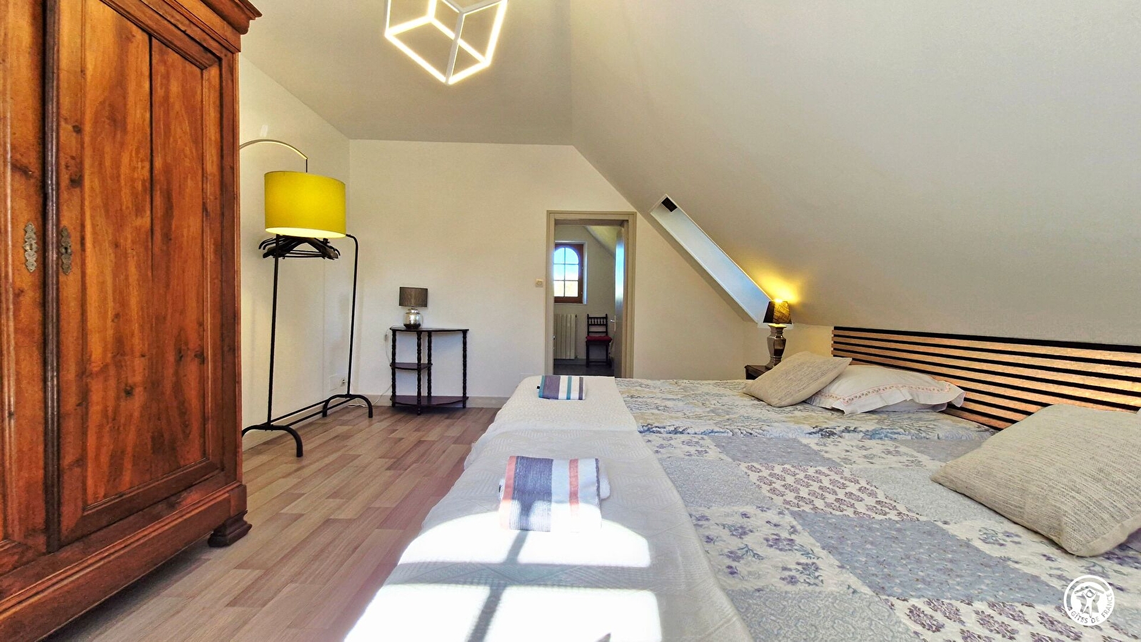 Au 1er étage, un baby-foot sur le palier avec bibliothèque, 1 chambre avec 2 lits 120x190 et 1 chambre avec 1 lit 140x190 + 1 lit 90x190.